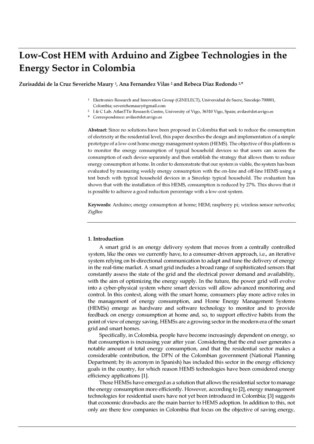Low-Cost HEM with Arduino and Zigbee Technologies in the Energy Sector