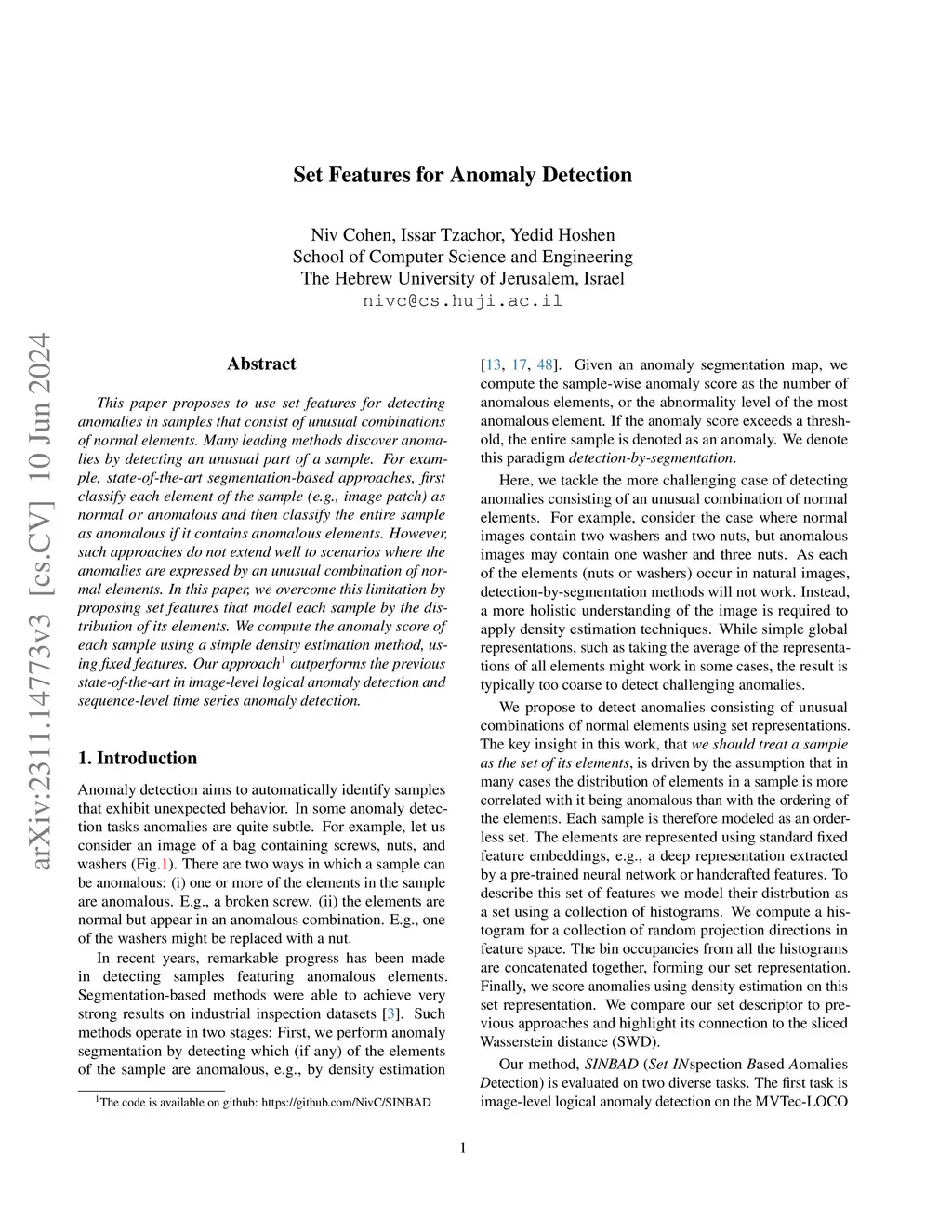 Set Features for Anomaly Detection