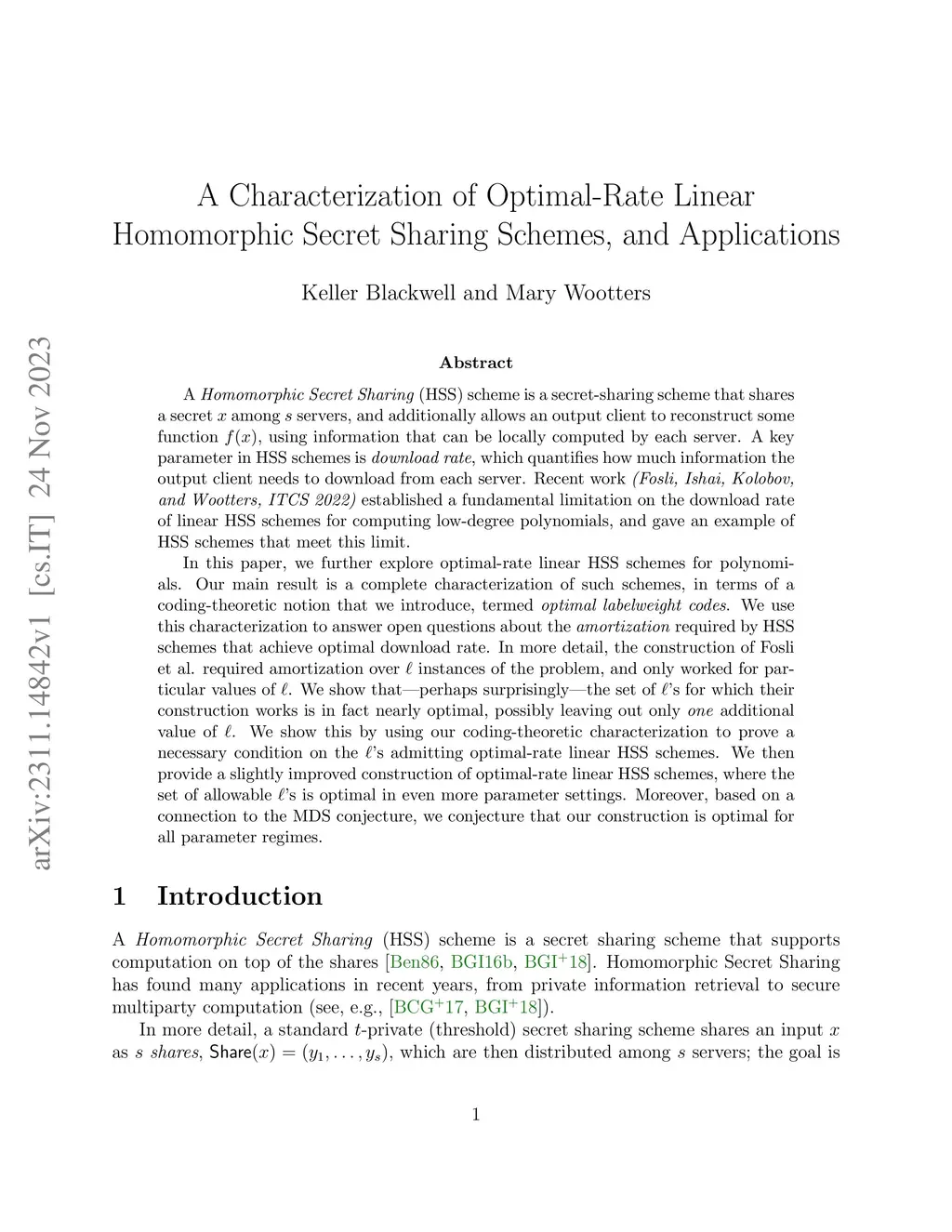 A Homomorphic Secret Sharing (HSS) scheme is a secret-sharing scheme that shares a secret among servers, and additionally allows an output client to reconstruct some function , using information that can be locally computed by each server. A key parameter in HSS schemes is download rate, which quantifies how much information the output client needs to download from each server. Recent work (Fosli, Ishai, Kolobov, and Wootters, ITCS 2022) established a fundamental limitation on the download rate of linear HSS schemes for computing low-degree polynomials, and gave an example of HSS schemes that meet this limit. In this paper, we further explore optimal-rate linear HSS schemes for polynomials. Our main result is a complete characterization of such schemes, in terms of a coding-theoretic notion that we introduce, termed optimal labelweight codes. We use this characterization to answer open questions about the amortization required by HSS schemes that achieve optimal download rate. In more detail, the construction of Fosli et al. required amortization over instances of the problem, and only worked for particular values of . We show that -- perhaps surprisingly -- the set of 's for which their construction works is in fact nearly optimal, possibly leaving out only one additional value of . We show this by using our coding-theoretic characterization to prove a necessary condition on the 's admitting optimal-rate linear HSS schemes. We then provide a slightly improved construction of optimal-rate linear HSS schemes, where the set of allowable 's is optimal in even more parameter settings. Moreover, based on a connection to the MDS conjecture, we conjecture that our construction is optimal for all parameter regimes.
