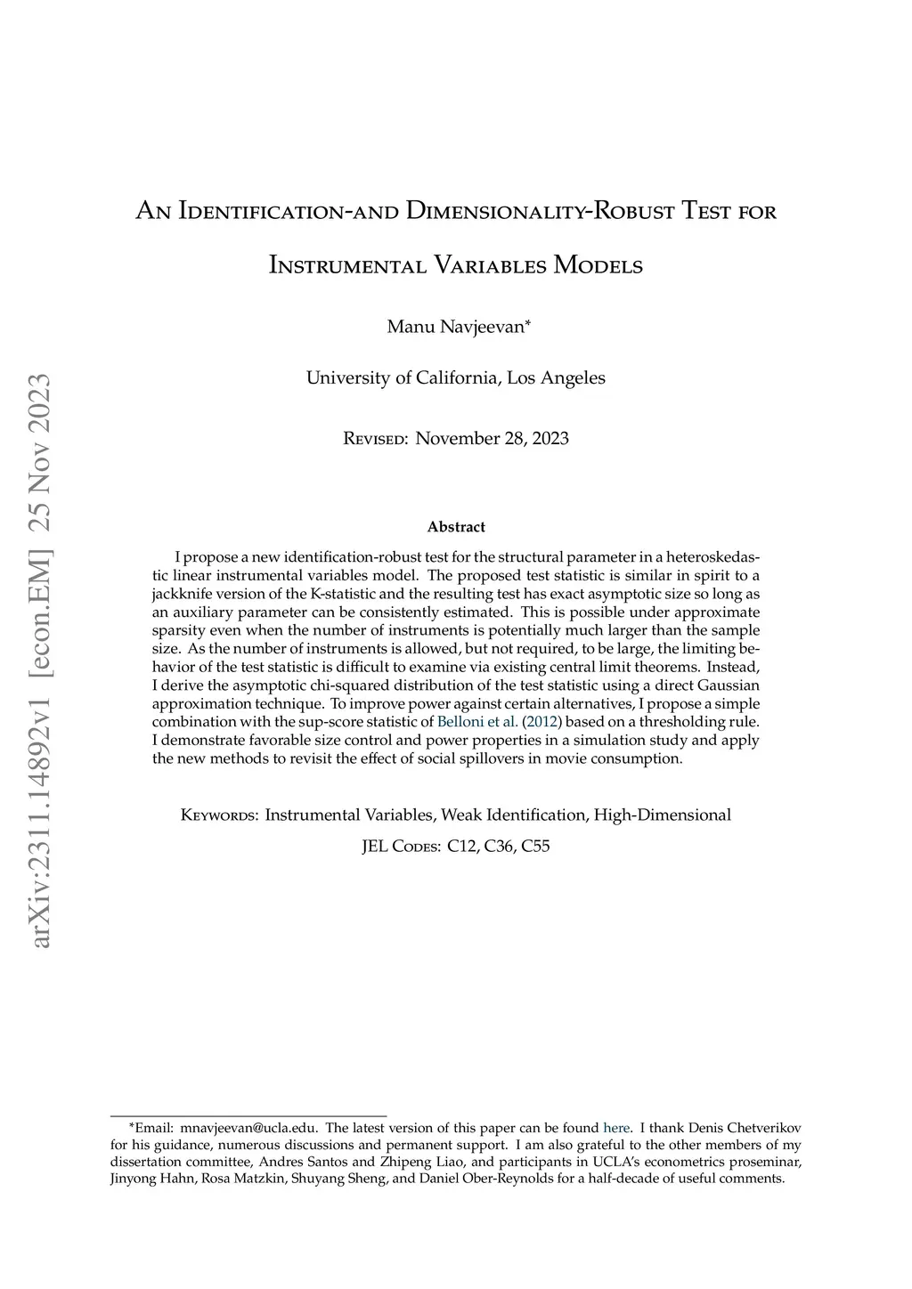An Identification and Dimensionality Robust Test for Instrumental