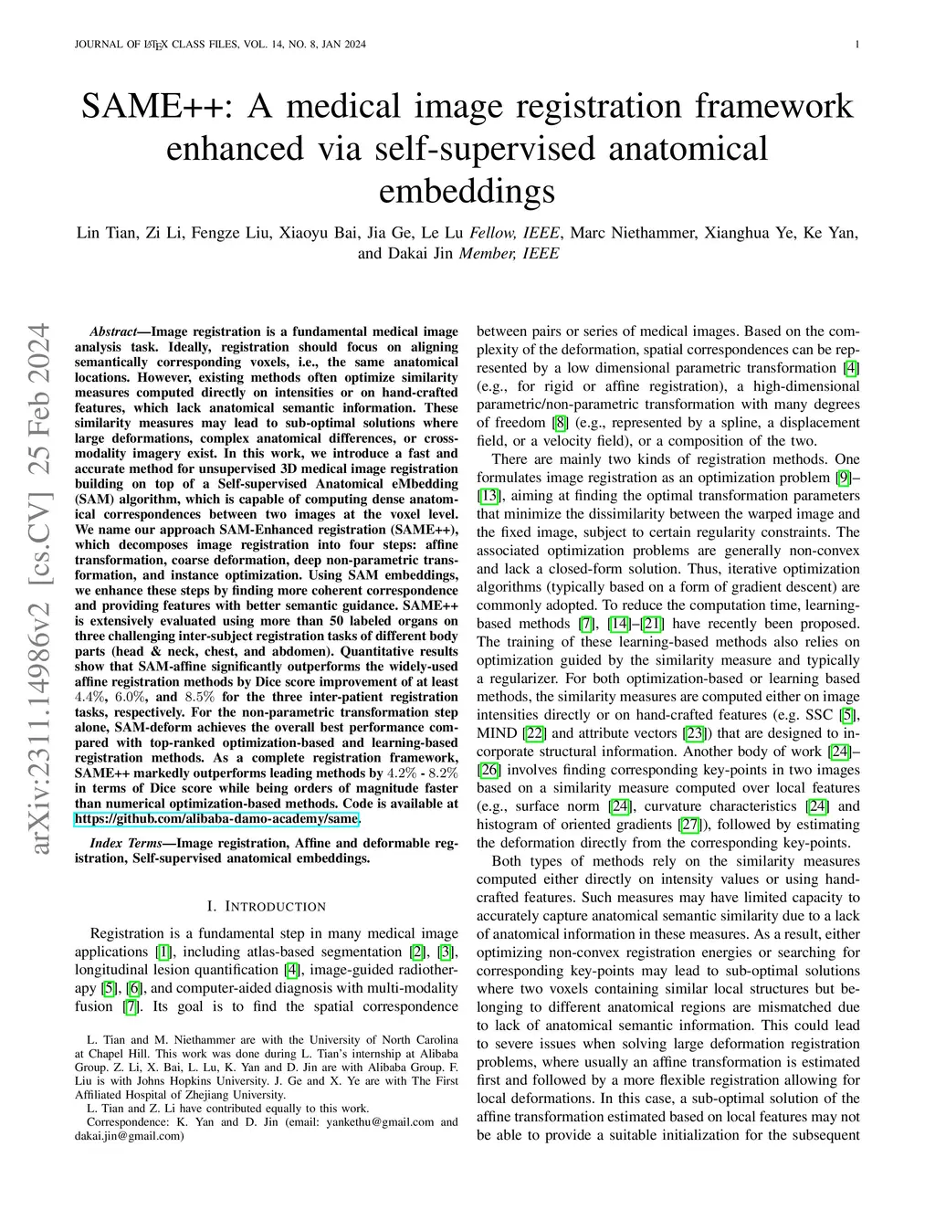 SAME++: A Self-supervised Anatomical eMbeddings Enhanced medical image