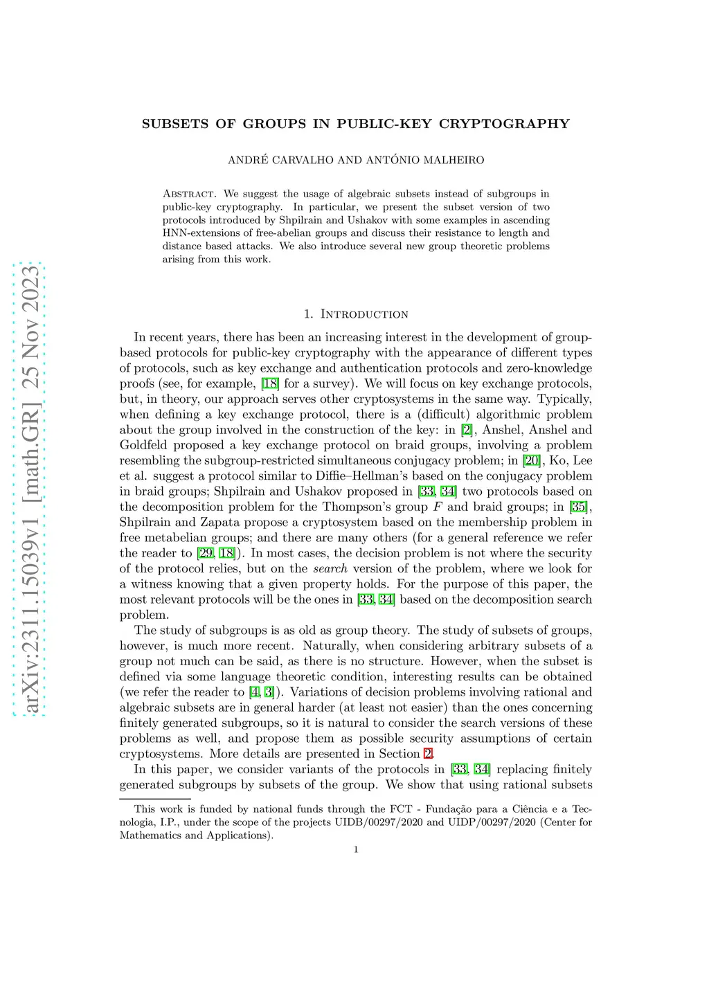 Subsets of groups in public-key cryptography