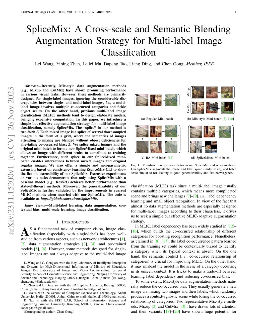 Recently, Mix-style data augmentation methods (e.g., Mixup and CutMix) have shown promising performance in various visual tasks. However, these methods are primarily designed for single-label images, ignoring the considerable discrepancies between single- and multi-label images, i.e., a multi-label image involves multiple co-occurred categories and fickle object scales. On the other hand, previous multi-label image classification (MLIC) methods tend to design elaborate models, bringing expensive computation. In this paper, we introduce a simple but effective augmentation strategy for multi-label image classification, namely SpliceMix. The "splice" in our method is two-fold: 1) Each mixed image is a splice of several downsampled images in the form of a grid, where the semantics of images attending to mixing are blended without object deficiencies for alleviating co-occurred bias; 2) We splice mixed images and the original mini-batch to form a new SpliceMixed mini-batch, which allows an image with different scales to contribute to training together. Furthermore, such splice in our SpliceMixed mini-batch enables interactions between mixed images and original regular images. We also offer a simple and non-parametric extension based on consistency learning (SpliceMix-CL) to show the flexible extensibility of our SpliceMix. Extensive experiments on various tasks demonstrate that only using SpliceMix with a baseline model (e.g., ResNet) achieves better performance than state-of-the-art methods. Moreover, the generalizability of our SpliceMix is further validated by the improvements in current MLIC methods when married with our SpliceMix. The code is available at https://github.com/zuiran/SpliceMix.