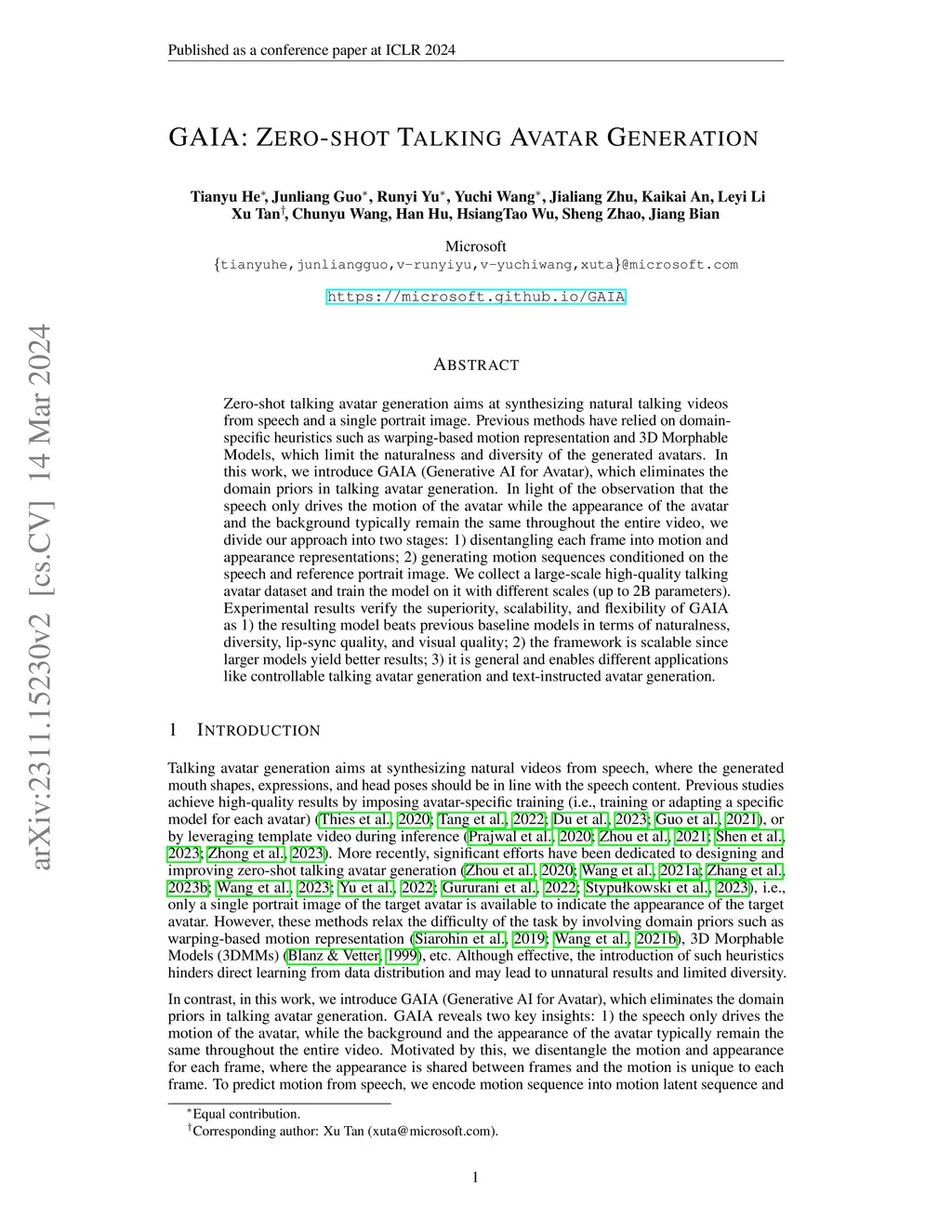 GAIA: Zero-shot Talking Avatar Generation