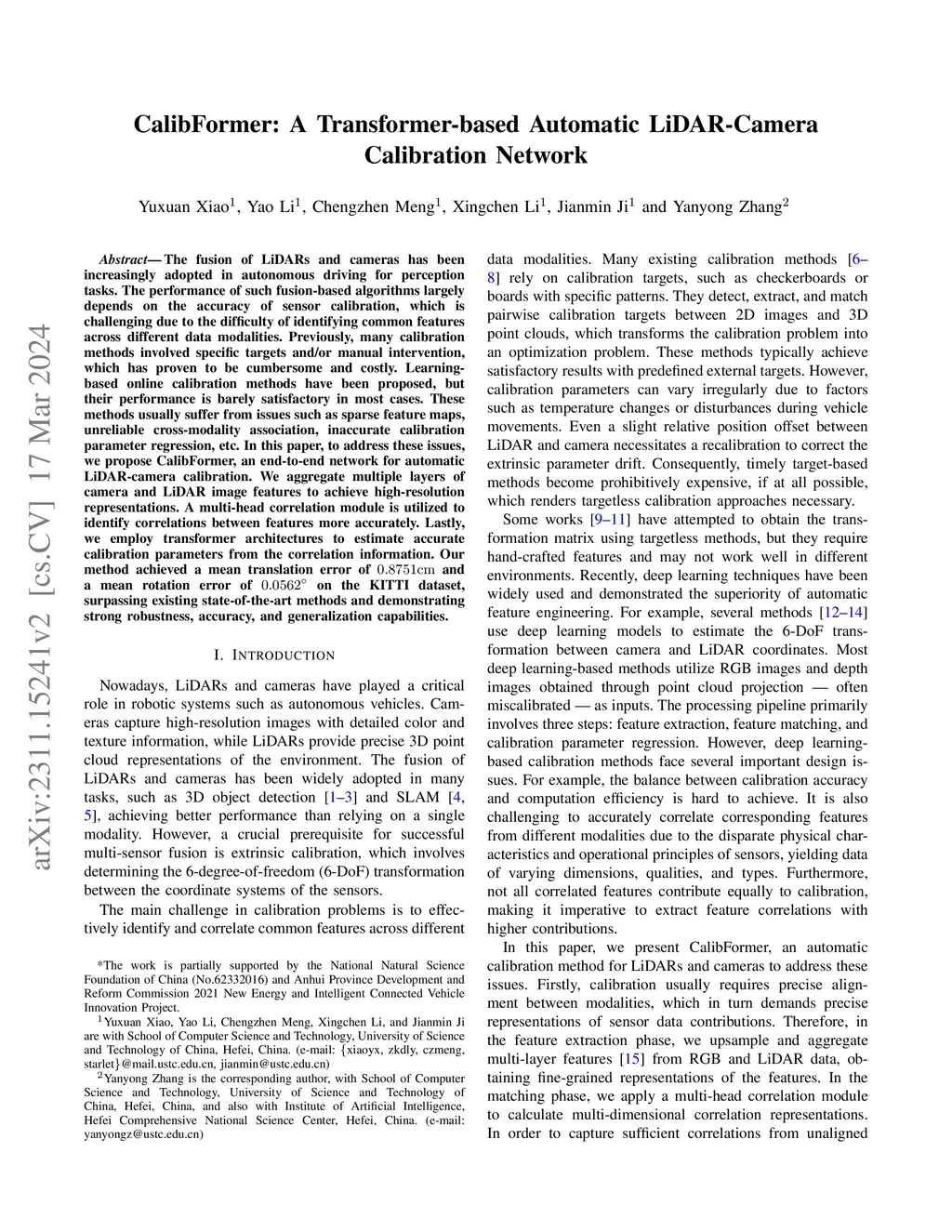 The fusion of LiDARs and cameras has been increasingly adopted in autonomous driving for perception tasks. The performance of such fusion-based algorithms largely depends on the accuracy of sensor calibration, which is challenging due to the difficulty of identifying common features across different data modalities. Previously, many calibration methods involved specific targets and/or manual intervention, which has proven to be cumbersome and costly. Learning-based online calibration methods have been proposed, but their performance is barely satisfactory in most cases. These methods usually suffer from issues such as sparse feature maps, unreliable cross-modality association, inaccurate calibration parameter regression, etc. In this paper, to address these issues, we propose CalibFormer, an end-to-end network for automatic LiDAR-camera calibration. We aggregate multiple layers of camera and LiDAR image features to achieve high-resolution representations. A multi-head correlation module is utilized to identify correlations between features more accurately. Lastly, we employ transformer architectures to estimate accurate calibration parameters from the correlation information. Our method achieved a mean translation error of and a mean rotation error of on the KITTI dataset, surpassing existing state-of-the-art methods and demonstrating strong robustness, accuracy, and generalization capabilities.