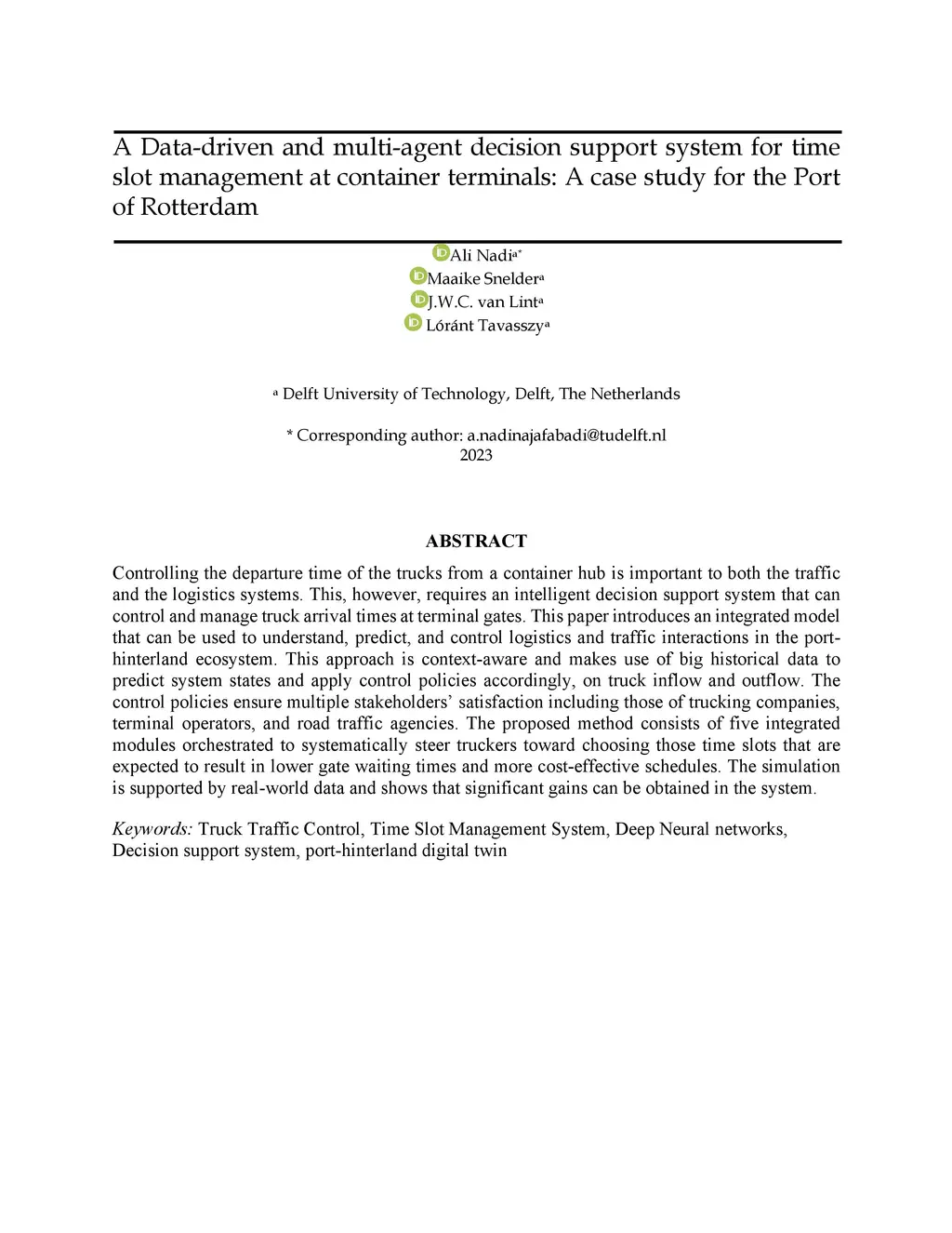 Controlling the departure time of the trucks from a container hub is important to both the traffic and the logistics systems. This, however, requires an intelligent decision support system that can control and manage truck arrival times at terminal gates. This paper introduces an integrated model that can be used to understand, predict, and control logistics and traffic interactions in the port-hinterland ecosystem. This approach is context-aware and makes use of big historical data to predict system states and apply control policies accordingly, on truck inflow and outflow. The control policies ensure multiple stakeholders satisfaction including those of trucking companies, terminal operators, and road traffic agencies. The proposed method consists of five integrated modules orchestrated to systematically steer truckers toward choosing those time slots that are expected to result in lower gate waiting times and more cost-effective schedules. The simulation is supported by real-world data and shows that significant gains can be obtained in the system.