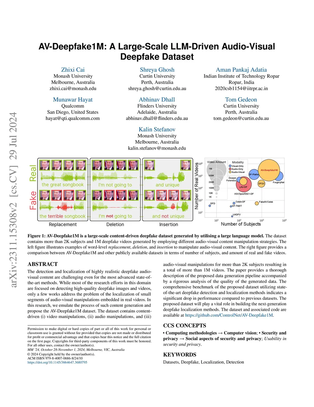 AV-Deepfake1M: A Large-Scale LLM-Driven Audio-Visual Deepfake Dataset
