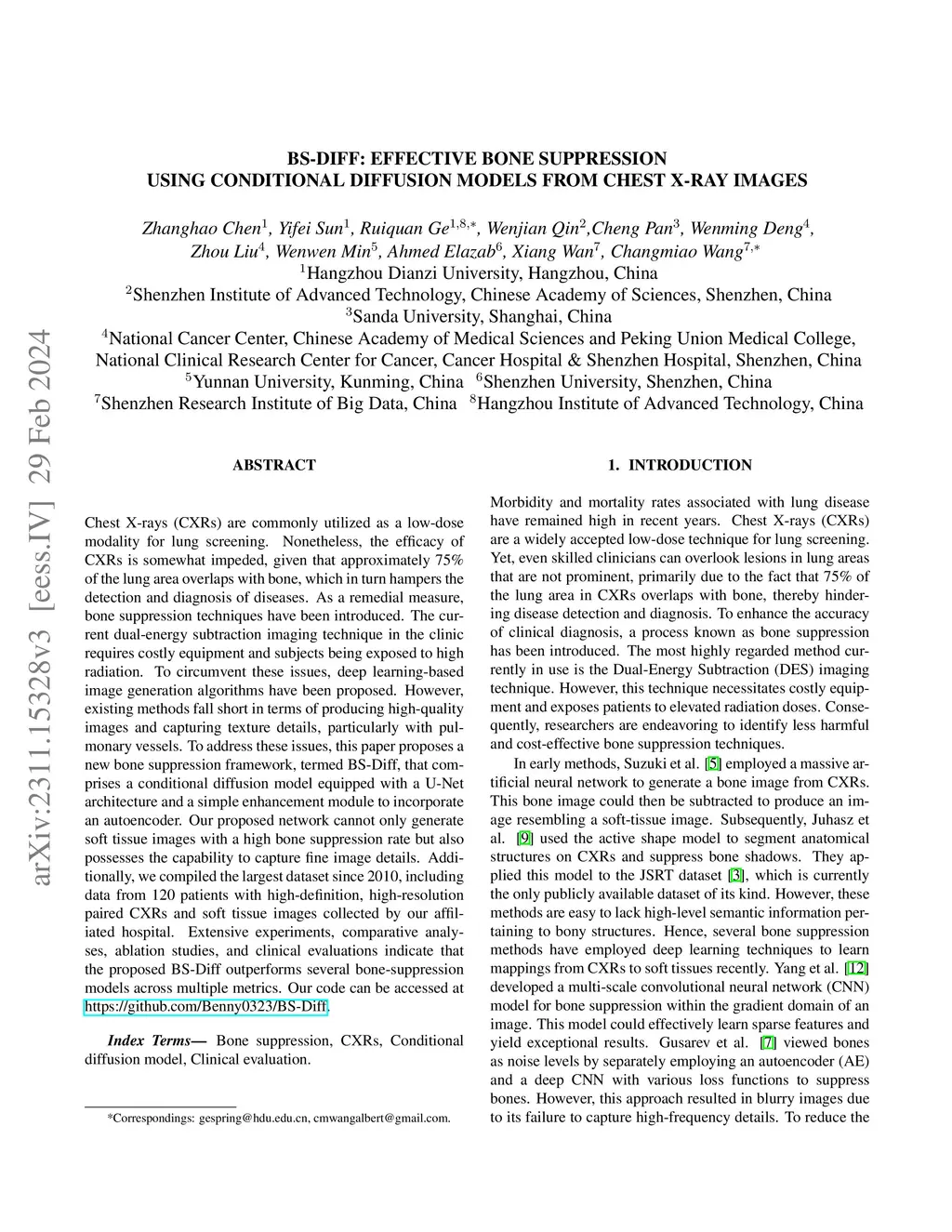 BS-Diff: Effective Bone Suppression Using Conditional Diffusion Models
