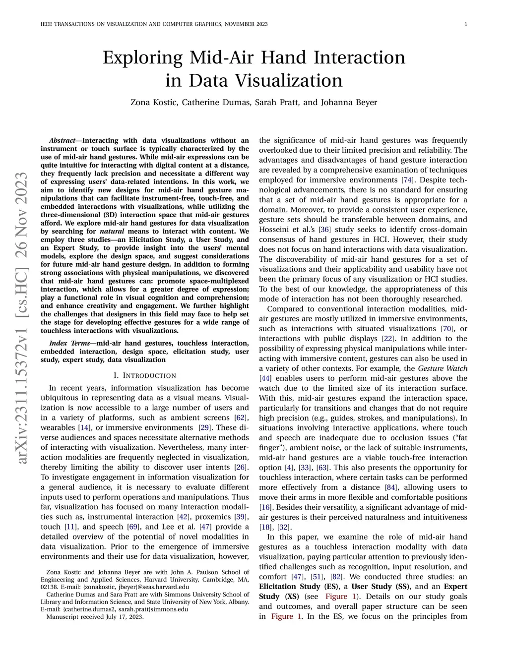 Exploring Mid-Air Hand Interaction in Data Visualization