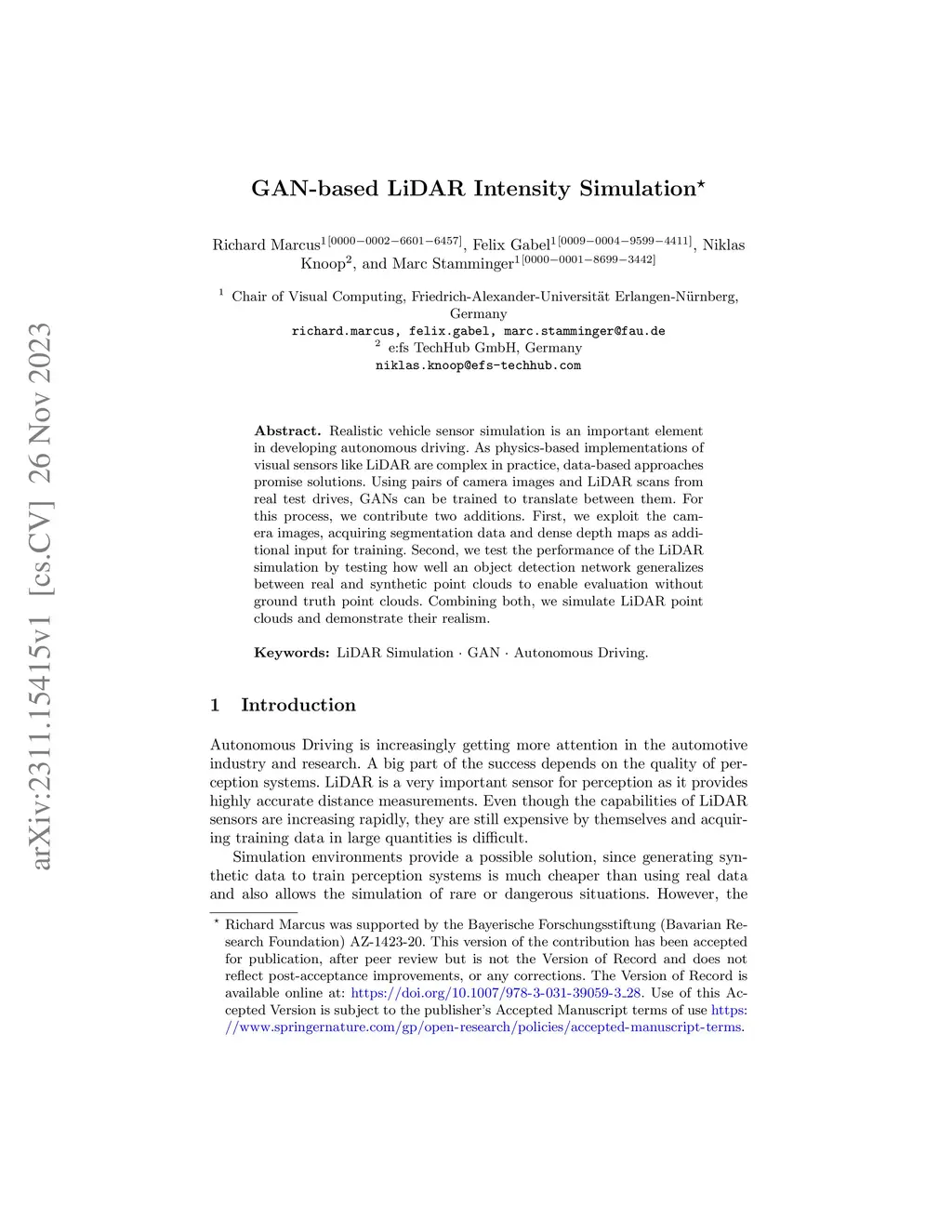 GAN-Based LiDAR Intensity Simulation
