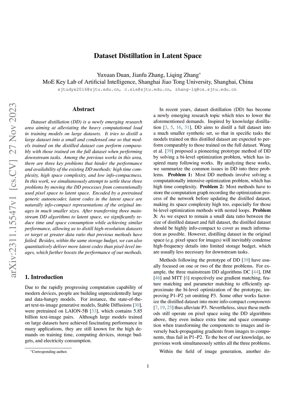 Dataset distillation (DD) is a newly emerging research area aiming at alleviating the heavy computational load in training models on large datasets. It tries to distill a large dataset into a small and condensed one so that models trained on the distilled dataset can perform comparably with those trained on the full dataset when performing downstream tasks. Among the previous works in this area, there are three key problems that hinder the performance and availability of the existing DD methods: high time complexity, high space complexity, and low info-compactness. In this work, we simultaneously attempt to settle these three problems by moving the DD processes from conventionally used pixel space to latent space. Encoded by a pretrained generic autoencoder, latent codes in the latent space are naturally info-compact representations of the original images in much smaller sizes. After transferring three mainstream DD algorithms to latent space, we significantly reduce time and space consumption while achieving similar performance, allowing us to distill high-resolution datasets or target at greater data ratio that previous methods have failed. Besides, within the same storage budget, we can also quantitatively deliver more latent codes than pixel-level images, which further boosts the performance of our methods.