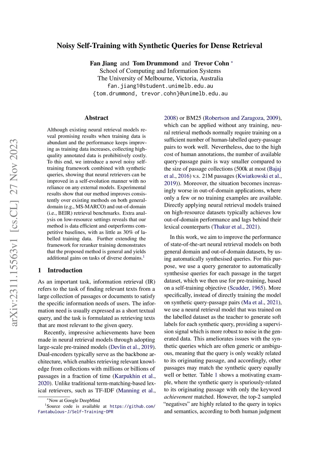 Noisy Self-Training with Synthetic Queries for Dense Retrieval