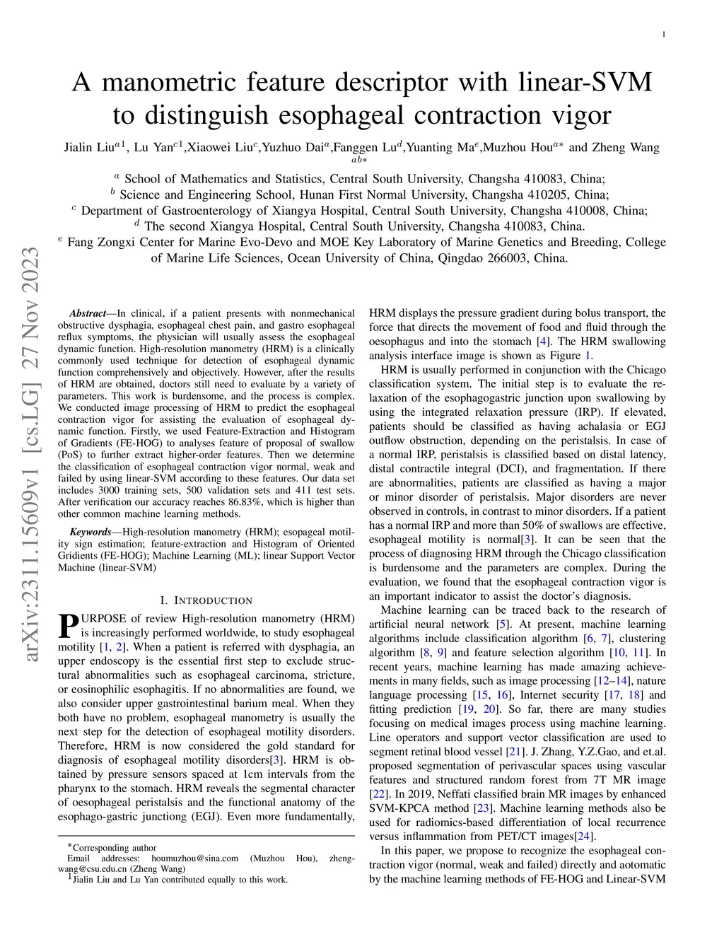 A manometric feature descriptor with linear-SVM to distinguish
