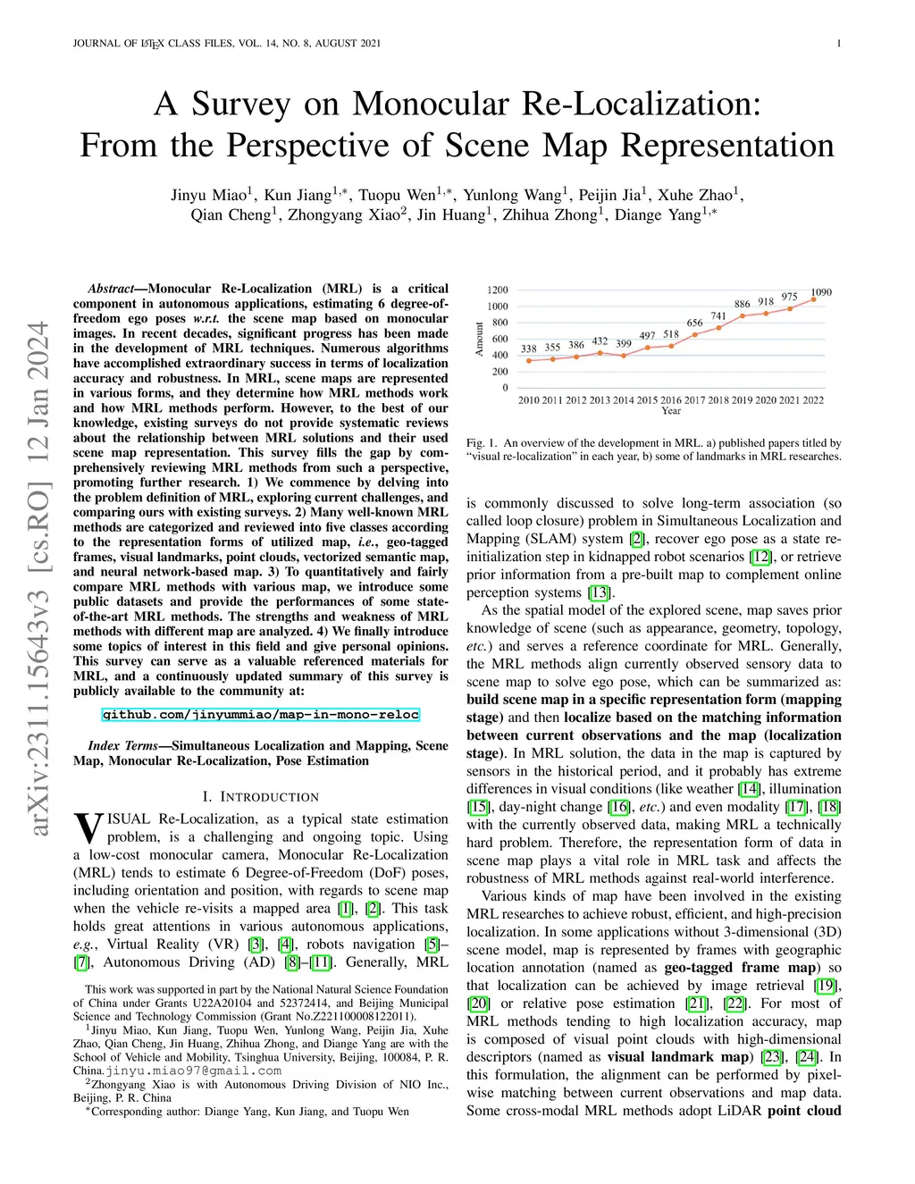 A Survey on Monocular Re-Localization: From the Perspective of Scene Map
