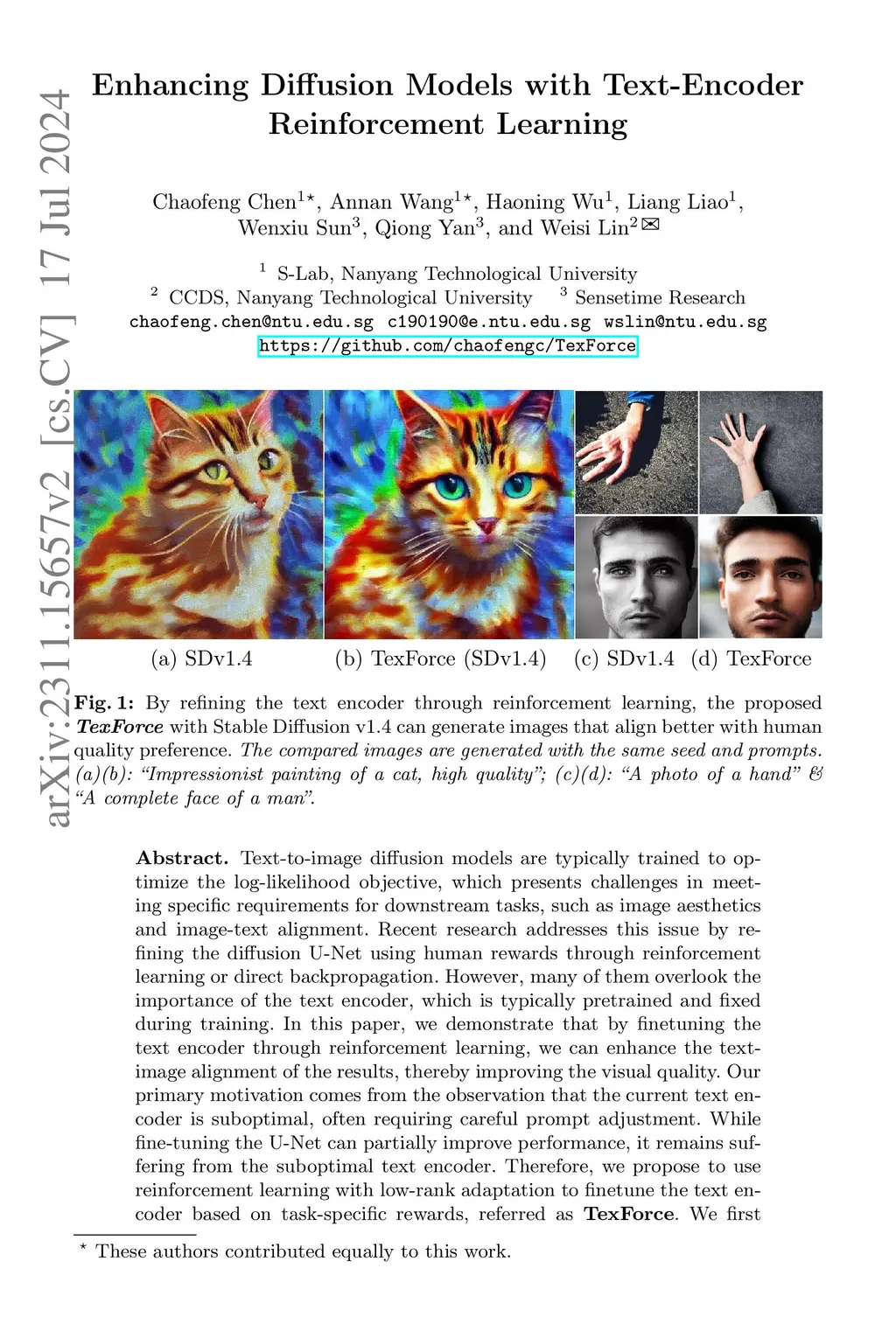 Text-to-image diffusion models are typically trained to optimize the log-likelihood objective, which presents challenges in meeting specific requirements for downstream tasks, such as image aesthetics and image-text alignment. Recent research addresses this issue by refining the diffusion U-Net using human rewards through reinforcement learning or direct backpropagation. However, many of them overlook the importance of the text encoder, which is typically pretrained and fixed during training. In this paper, we demonstrate that by finetuning the text encoder through reinforcement learning, we can enhance the text-image alignment of the results, thereby improving the visual quality. Our primary motivation comes from the observation that the current text encoder is suboptimal, often requiring careful prompt adjustment. While fine-tuning the U-Net can partially improve performance, it remains suffering from the suboptimal text encoder. Therefore, we propose to use reinforcement learning with low-rank adaptation to finetune the text encoder based on task-specific rewards, referred as \textbf{TexForce}. We first show that finetuning the text encoder can improve the performance of diffusion models. Then, we illustrate that TexForce can be simply combined with existing U-Net finetuned models to get much better results without additional training. Finally, we showcase the adaptability of our method in diverse applications, including the generation of high-quality face and hand images.
