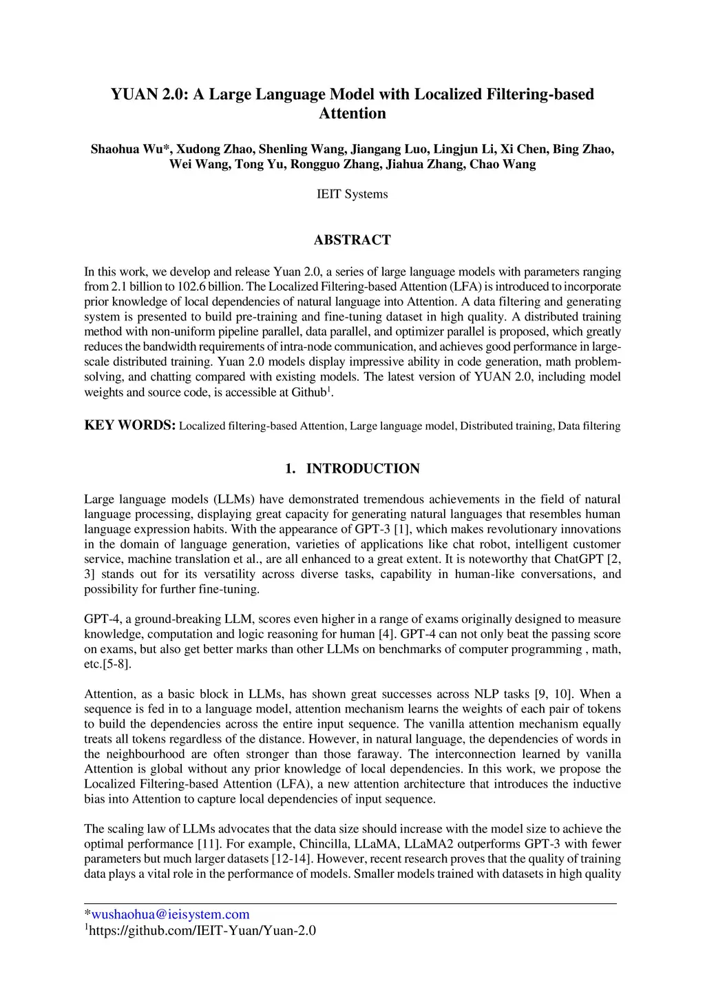 YUAN 2.0: A Large Language Model with Localized Filtering-based