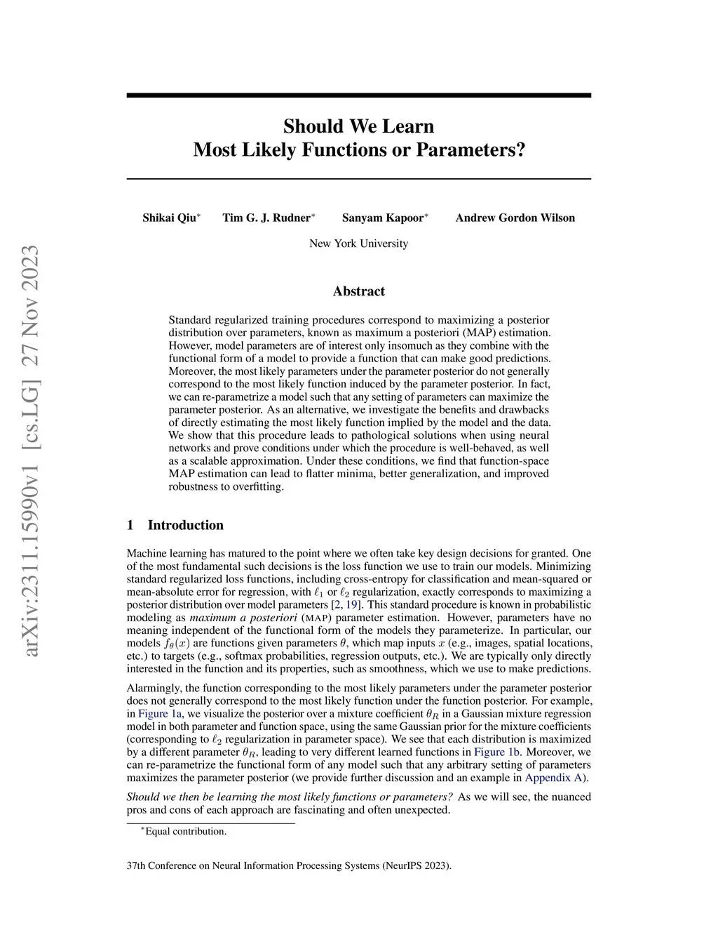 Should We Learn Most Likely Functions or Parameters?