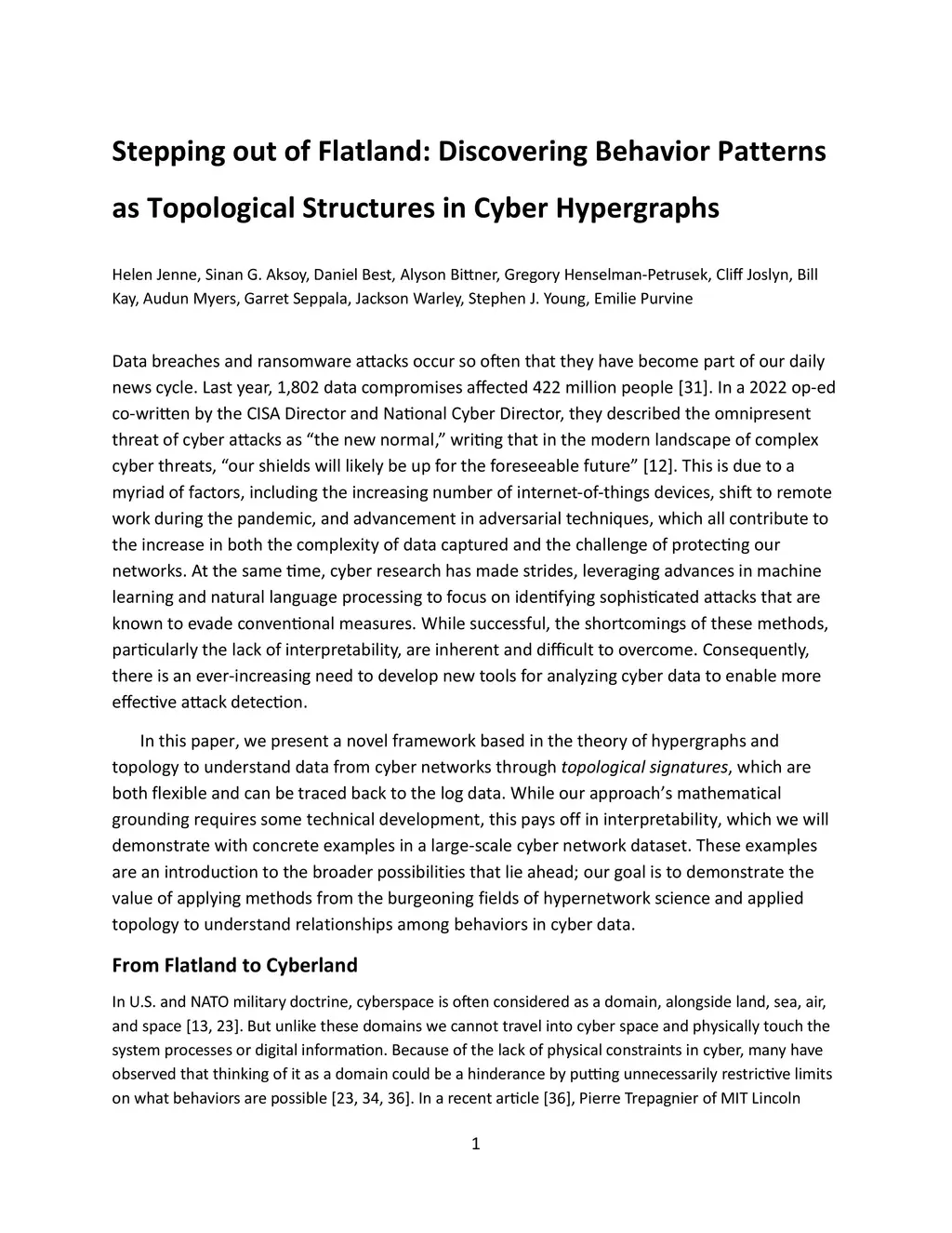 Data breaches and ransomware attacks occur so often that they have become part of our daily news cycle. This is due to a myriad of factors, including the increasing number of internet-of-things devices, shift to remote work during the pandemic, and advancement in adversarial techniques, which all contribute to the increase in both the complexity of data captured and the challenge of protecting our networks. At the same time, cyber research has made strides, leveraging advances in machine learning and natural language processing to focus on identifying sophisticated attacks that are known to evade conventional measures. While successful, the shortcomings of these methods, particularly the lack of interpretability, are inherent and difficult to overcome. Consequently, there is an ever-increasing need to develop new tools for analyzing cyber data to enable more effective attack detection. In this paper, we present a novel framework based in the theory of hypergraphs and topology to understand data from cyber networks through topological signatures, which are both flexible and can be traced back to the log data. While our approach's mathematical grounding requires some technical development, this pays off in interpretability, which we will demonstrate with concrete examples in a large-scale cyber network dataset. These examples are an introduction to the broader possibilities that lie ahead; our goal is to demonstrate the value of applying methods from the burgeoning fields of hypernetwork science and applied topology to understand relationships among behaviors in cyber data.