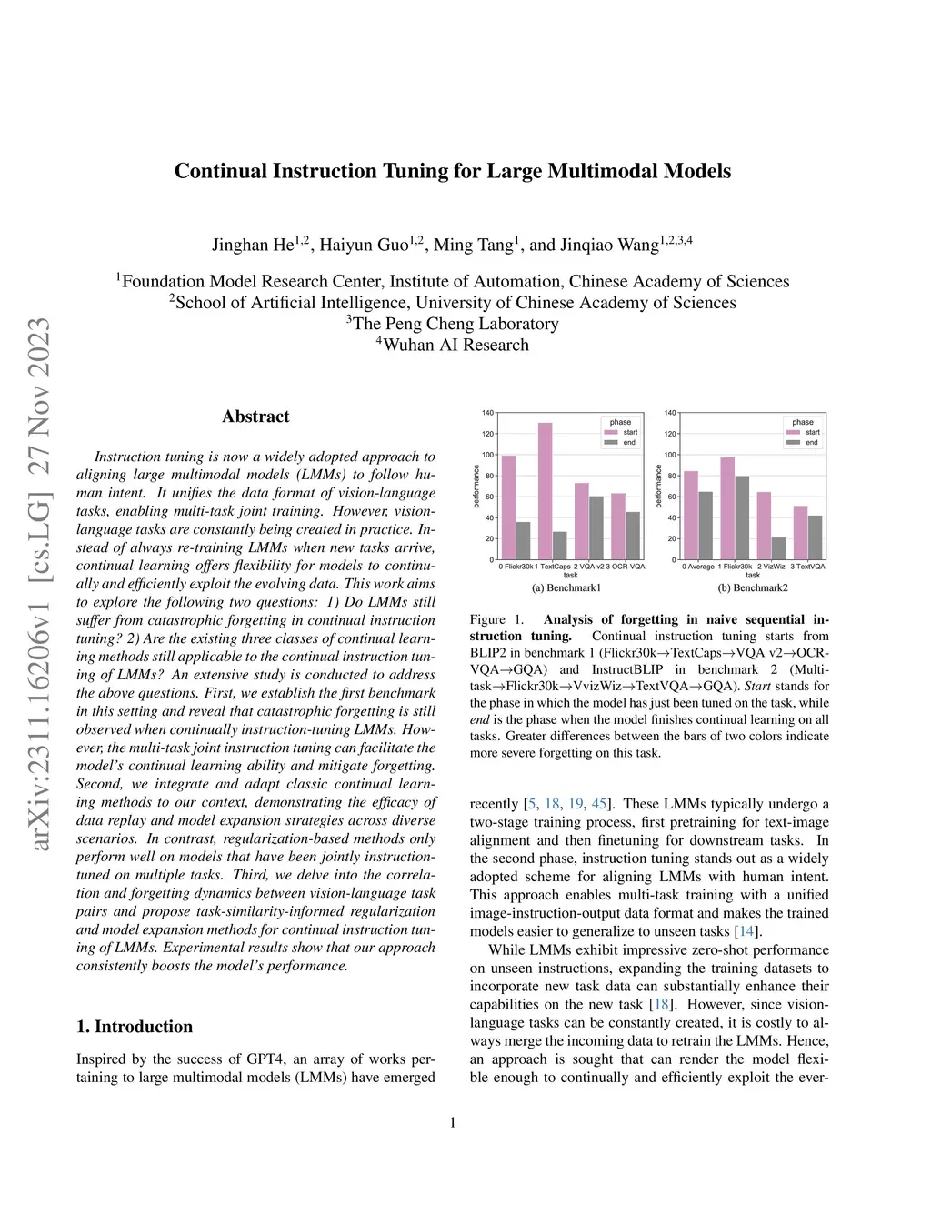 Instruction tuning is now a widely adopted approach to aligning large multimodal models (LMMs) to follow human intent. It unifies the data format of vision-language tasks, enabling multi-task joint training. However, vision-language tasks are constantly being created in practice. Instead of always re-training LMMs when new tasks arrive, continual learning offers flexibility for models to continually and efficiently exploit the evolving data. This work aims to explore the following two questions: 1) Do LMMs still suffer from catastrophic forgetting in continual instruction tuning? 2) Are the existing three classes of continual learning methods still applicable to the continual instruction tuning of LMMs? An extensive study is conducted to address the above questions. First, we establish the first benchmark in this setting and reveal that catastrophic forgetting is still observed when continually instruction-tuning LMMs. However, the multi-task joint instruction tuning can facilitate the model's continual learning ability and mitigate forgetting. Second, we integrate and adapt classic continual learning methods to our context, demonstrating the efficacy of data replay and model expansion strategies across diverse scenarios. In contrast, regularization-based methods only perform well on models that have been jointly instruction-tuned on multiple tasks. Third, we delve into the correlation and forgetting dynamics between vision-language task pairs and propose task-similarity-informed regularization and model expansion methods for continual instruction tuning of LMMs. Experimental results show that our approach consistently boosts the model's performance.