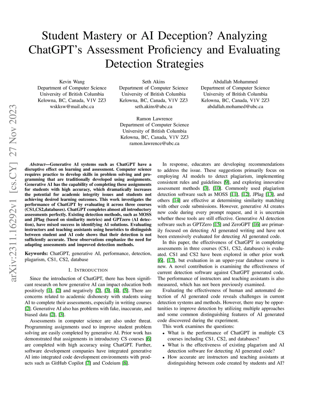 Student Mastery or AI Deception? Analyzing ChatGPT's Assessment