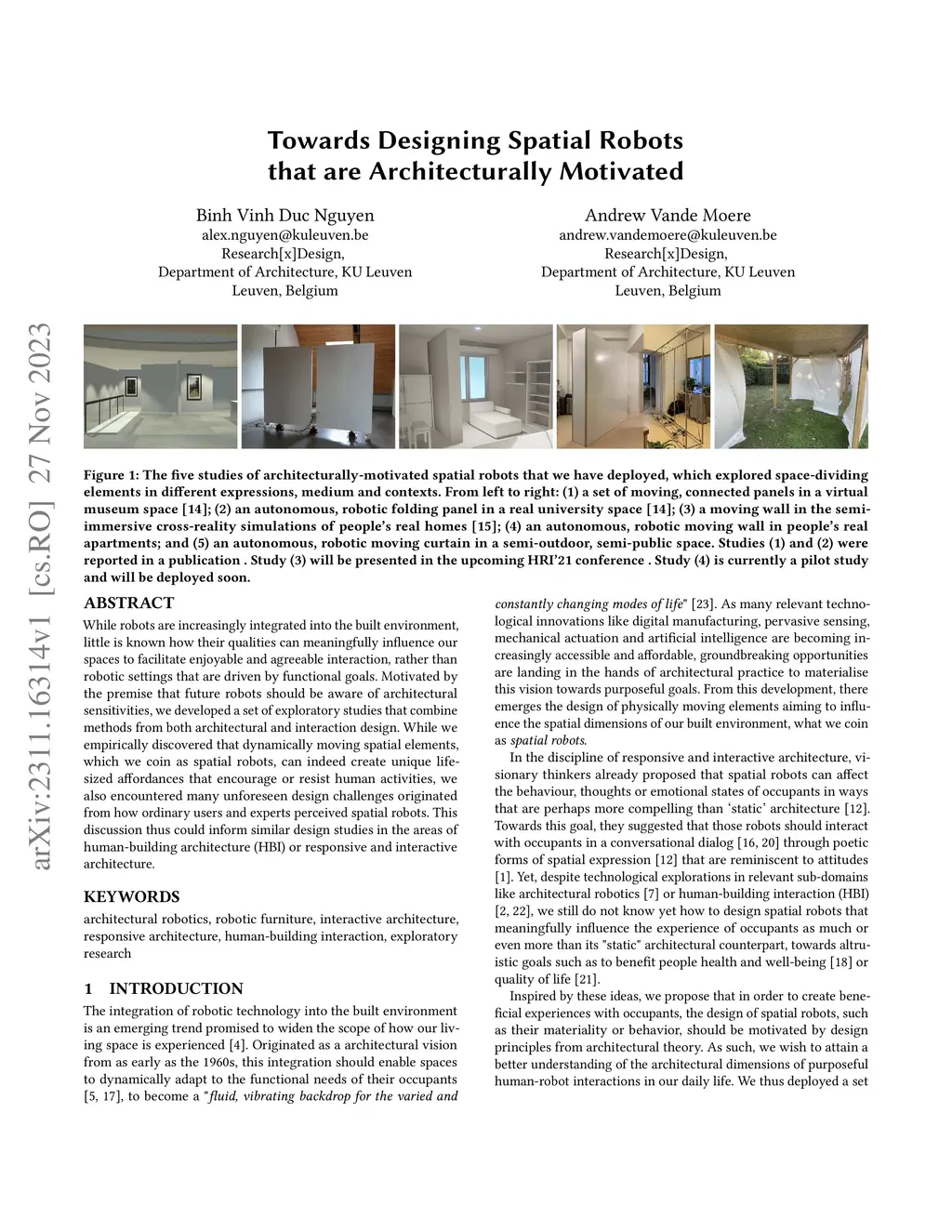 Towards Designing Spatial Robots that are Architecturally Motivated