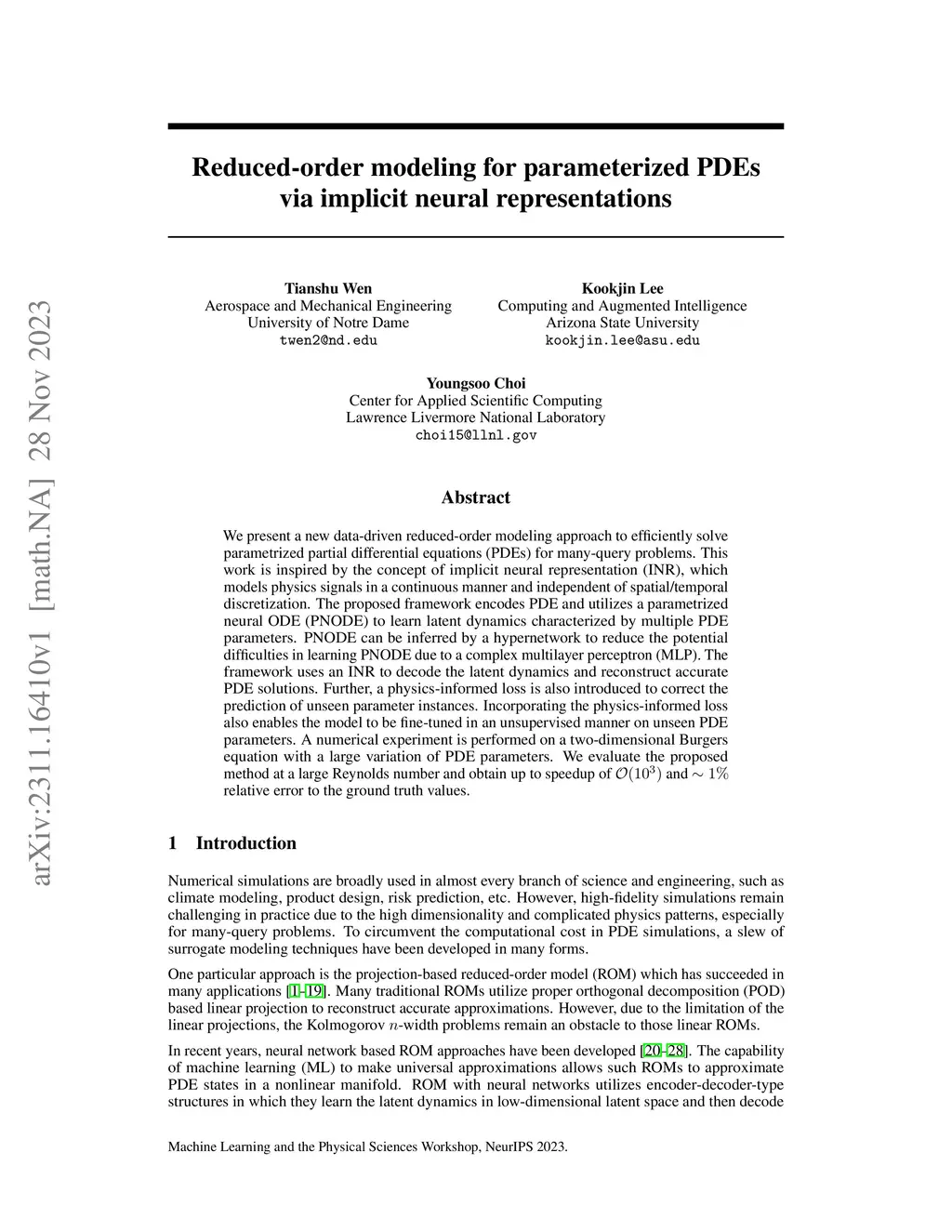 Reduced-order modeling for parameterized PDEs via implicit neural