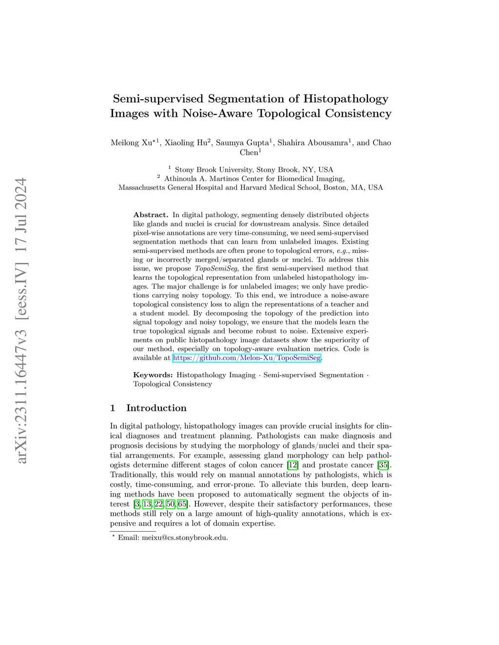 Semi-supervised Segmentation of Histopathology Images with Noise-Aware
