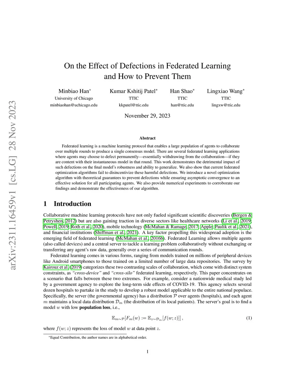 Federated learning is a machine learning protocol that enables a large population of agents to collaborate over multiple rounds to produce a single consensus model. There are several federated learning applications where agents may choose to defect permanentlyessentially withdrawing from the collaborationif they are content with their instantaneous model in that round. This work demonstrates the detrimental impact of such defections on the final model's robustness and ability to generalize. We also show that current federated optimization algorithms fail to disincentivize these harmful defections. We introduce a novel optimization algorithm with theoretical guarantees to prevent defections while ensuring asymptotic convergence to an effective solution for all participating agents. We also provide numerical experiments to corroborate our findings and demonstrate the effectiveness of our algorithm.
