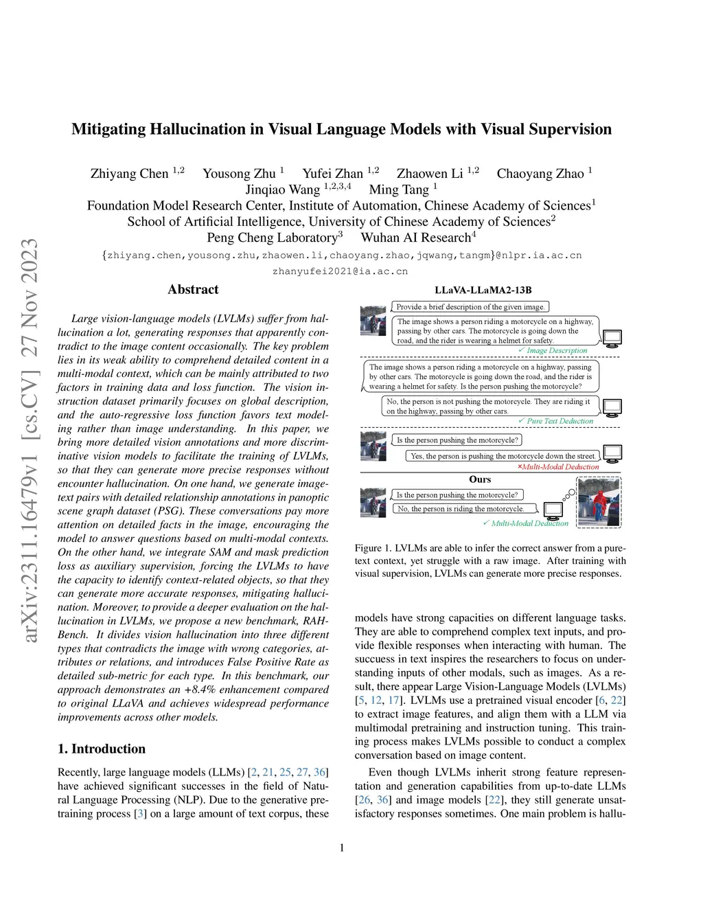 Large vision-language models (LVLMs) suffer from hallucination a lot, generating responses that apparently contradict to the image content occasionally. The key problem lies in its weak ability to comprehend detailed content in a multi-modal context, which can be mainly attributed to two factors in training data and loss function. The vision instruction dataset primarily focuses on global description, and the auto-regressive loss function favors text modeling rather than image understanding. In this paper, we bring more detailed vision annotations and more discriminative vision models to facilitate the training of LVLMs, so that they can generate more precise responses without encounter hallucination. On one hand, we generate image-text pairs with detailed relationship annotations in panoptic scene graph dataset (PSG). These conversations pay more attention on detailed facts in the image, encouraging the model to answer questions based on multi-modal contexts. On the other hand, we integrate SAM and mask prediction loss as auxiliary supervision, forcing the LVLMs to have the capacity to identify context-related objects, so that they can generate more accurate responses, mitigating hallucination. Moreover, to provide a deeper evaluation on the hallucination in LVLMs, we propose a new benchmark, RAH-Bench. It divides vision hallucination into three different types that contradicts the image with wrong categories, attributes or relations, and introduces False Positive Rate as detailed sub-metric for each type. In this benchmark, our approach demonstrates an +8.4% enhancement compared to original LLaVA and achieves widespread performance improvements across other models.