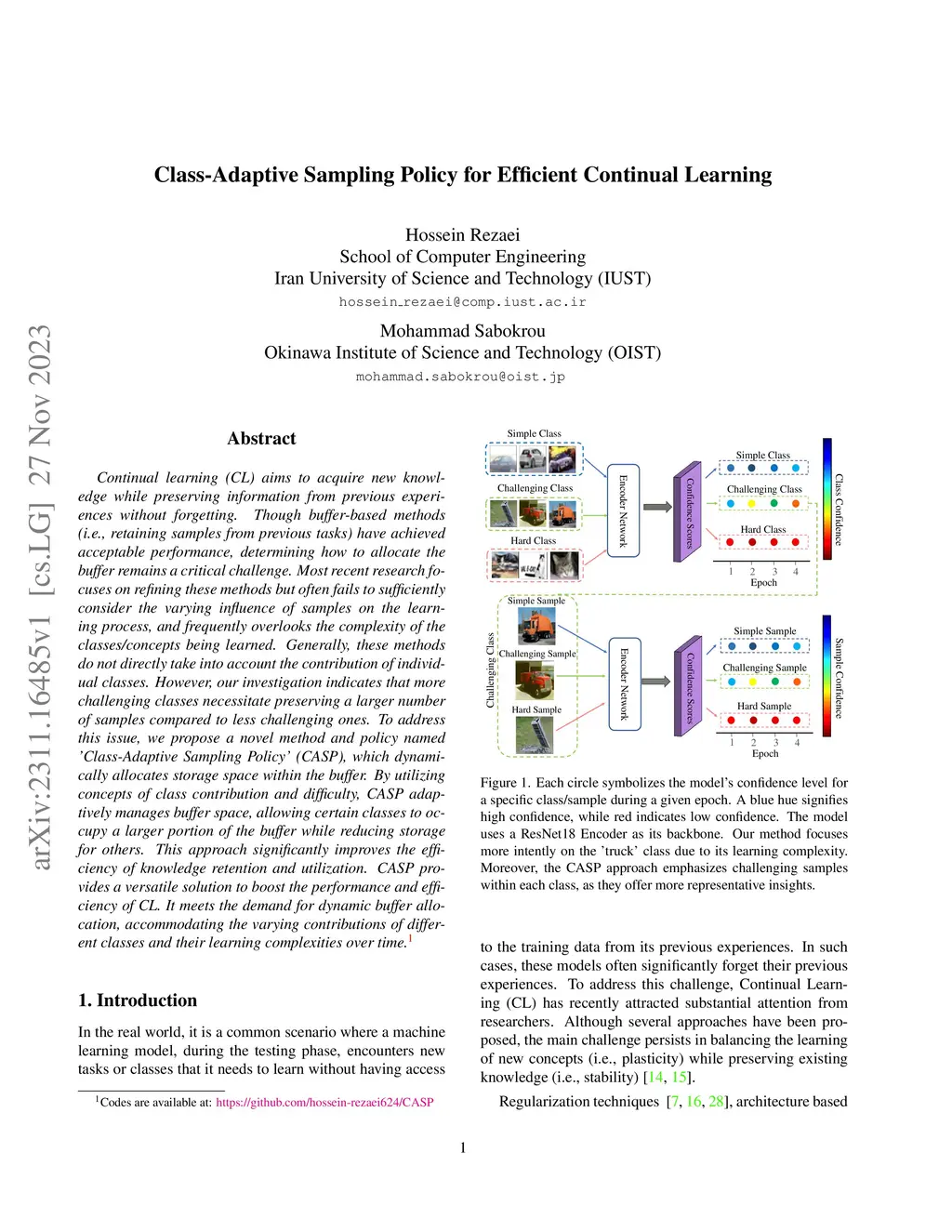 Class-Adaptive Sampling Policy for Efficient Continual Learning