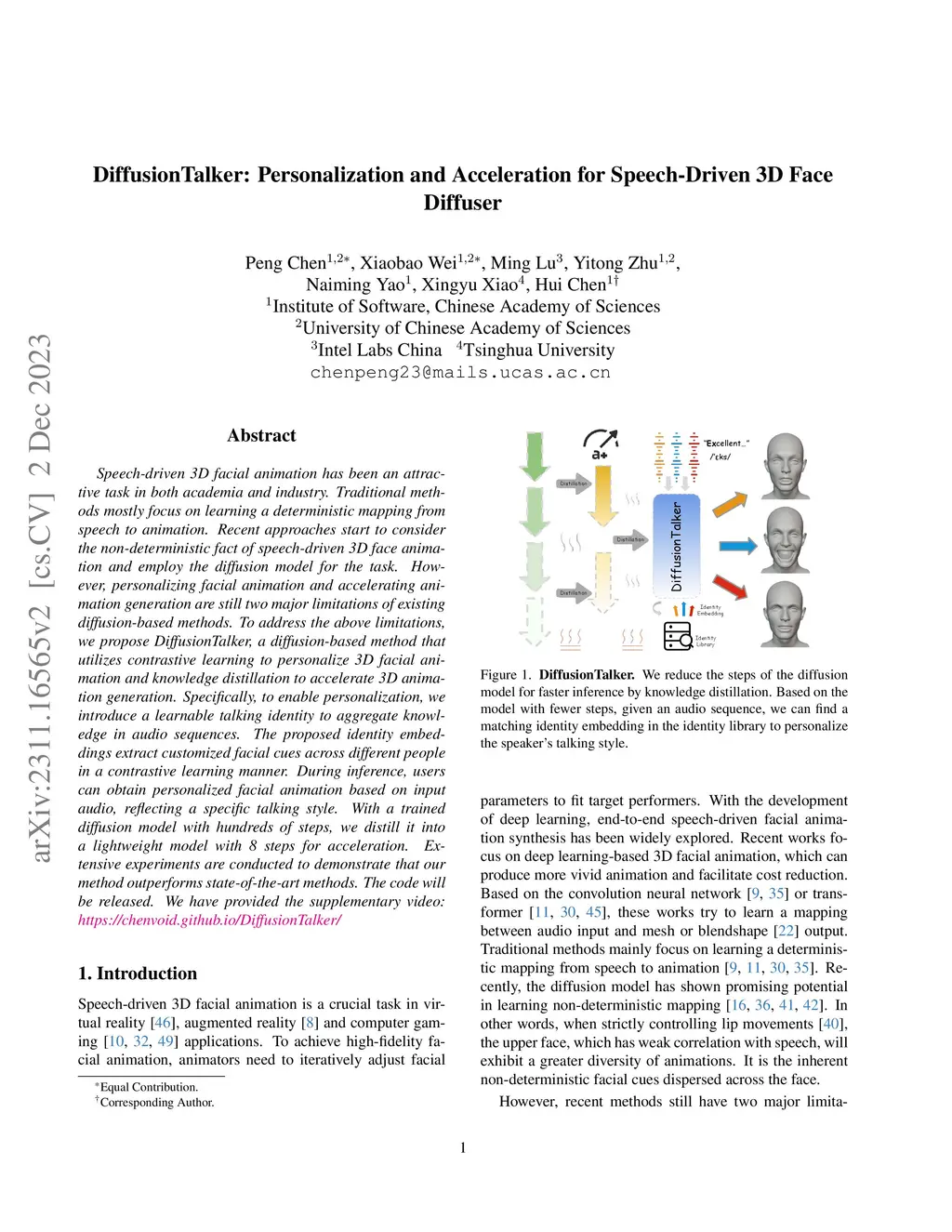 Speech-driven 3D facial animation has been an attractive task in both academia and industry. Traditional methods mostly focus on learning a deterministic mapping from speech to animation. Recent approaches start to consider the non-deterministic fact of speech-driven 3D face animation and employ the diffusion model for the task. However, personalizing facial animation and accelerating animation generation are still two major limitations of existing diffusion-based methods. To address the above limitations, we propose DiffusionTalker, a diffusion-based method that utilizes contrastive learning to personalize 3D facial animation and knowledge distillation to accelerate 3D animation generation. Specifically, to enable personalization, we introduce a learnable talking identity to aggregate knowledge in audio sequences. The proposed identity embeddings extract customized facial cues across different people in a contrastive learning manner. During inference, users can obtain personalized facial animation based on input audio, reflecting a specific talking style. With a trained diffusion model with hundreds of steps, we distill it into a lightweight model with 8 steps for acceleration. Extensive experiments are conducted to demonstrate that our method outperforms state-of-the-art methods. The code will be released.