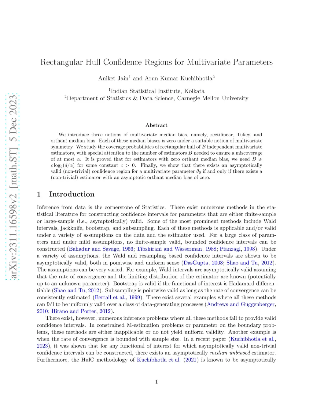 We introduce three notions of multivariate median bias, namely, rectilinear, Tukey, and orthant median bias. Each of these median biases is zero under a suitable notion of multivariate symmetry. We study the coverage probabilities of rectangular hull of independent multivariate estimators, with special attention to the number of estimators needed to ensure a miscoverage of at most . It is proved that for estimators with zero orthant median bias, we need for some constant . Finally, we show that there exists an asymptotically valid (non-trivial) confidence region for a multivariate parameter if and only if there exists a (non-trivial) estimator with an asymptotic orthant median bias of zero.