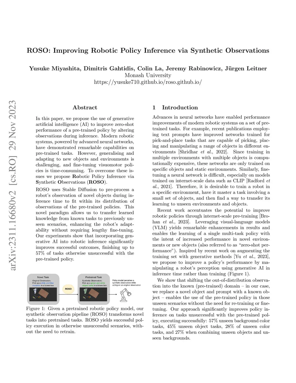 ROSO: Improving Robotic Policy Inference via Synthetic Observations
