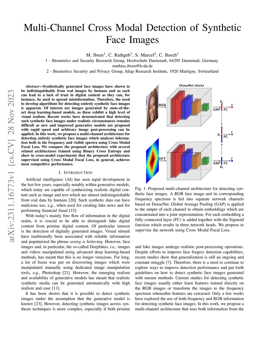 Multi-Channel Cross Modal Detection of Synthetic Face Images
