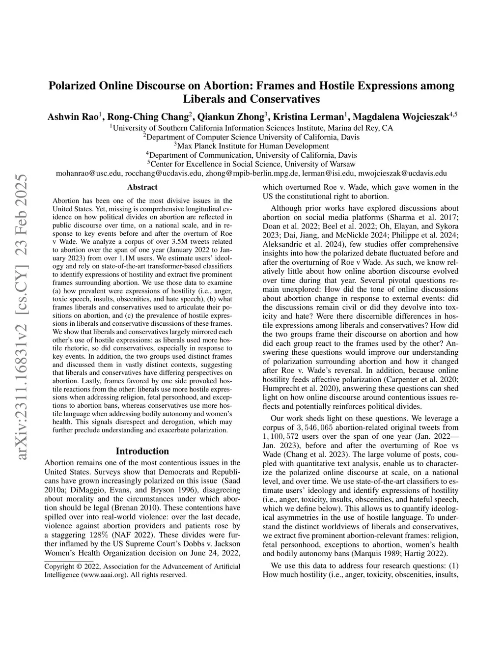 Polarized Online Discourse on Abortion: Frames and Hostile Expressions among Liberals and Conservatives