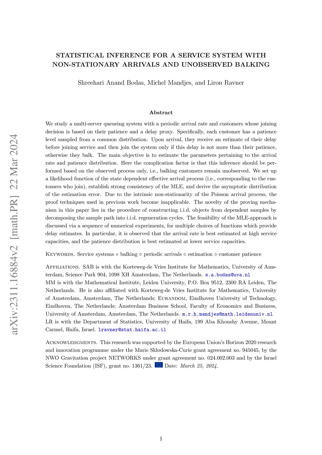 Statistical inference for a service system with non-stationary arrivals