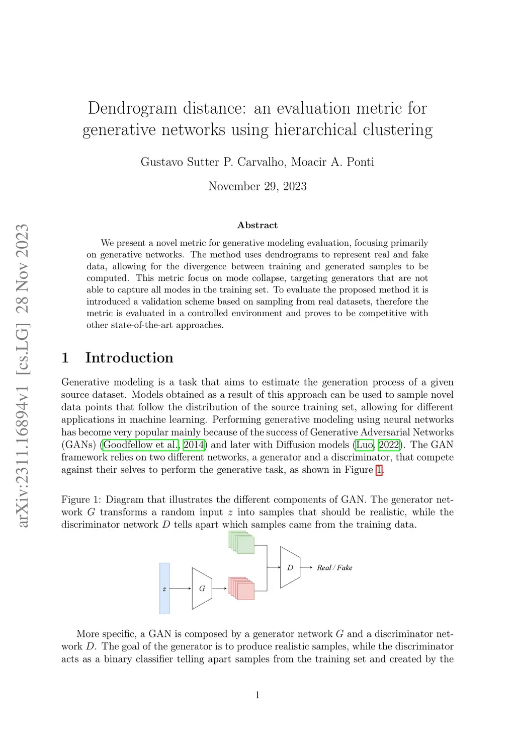 We present a novel metric for generative modeling evaluation, focusing primarily on generative networks. The method uses dendrograms to represent real and fake data, allowing for the divergence between training and generated samples to be computed. This metric focus on mode collapse, targeting generators that are not able to capture all modes in the training set. To evaluate the proposed method it is introduced a validation scheme based on sampling from real datasets, therefore the metric is evaluated in a controlled environment and proves to be competitive with other state-of-the-art approaches.