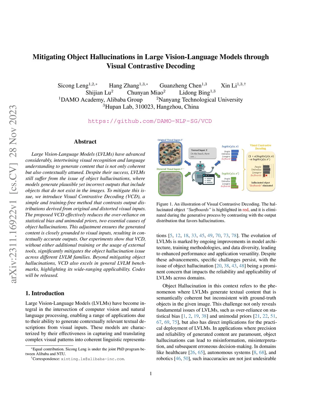 Visual Contrastive Decoding