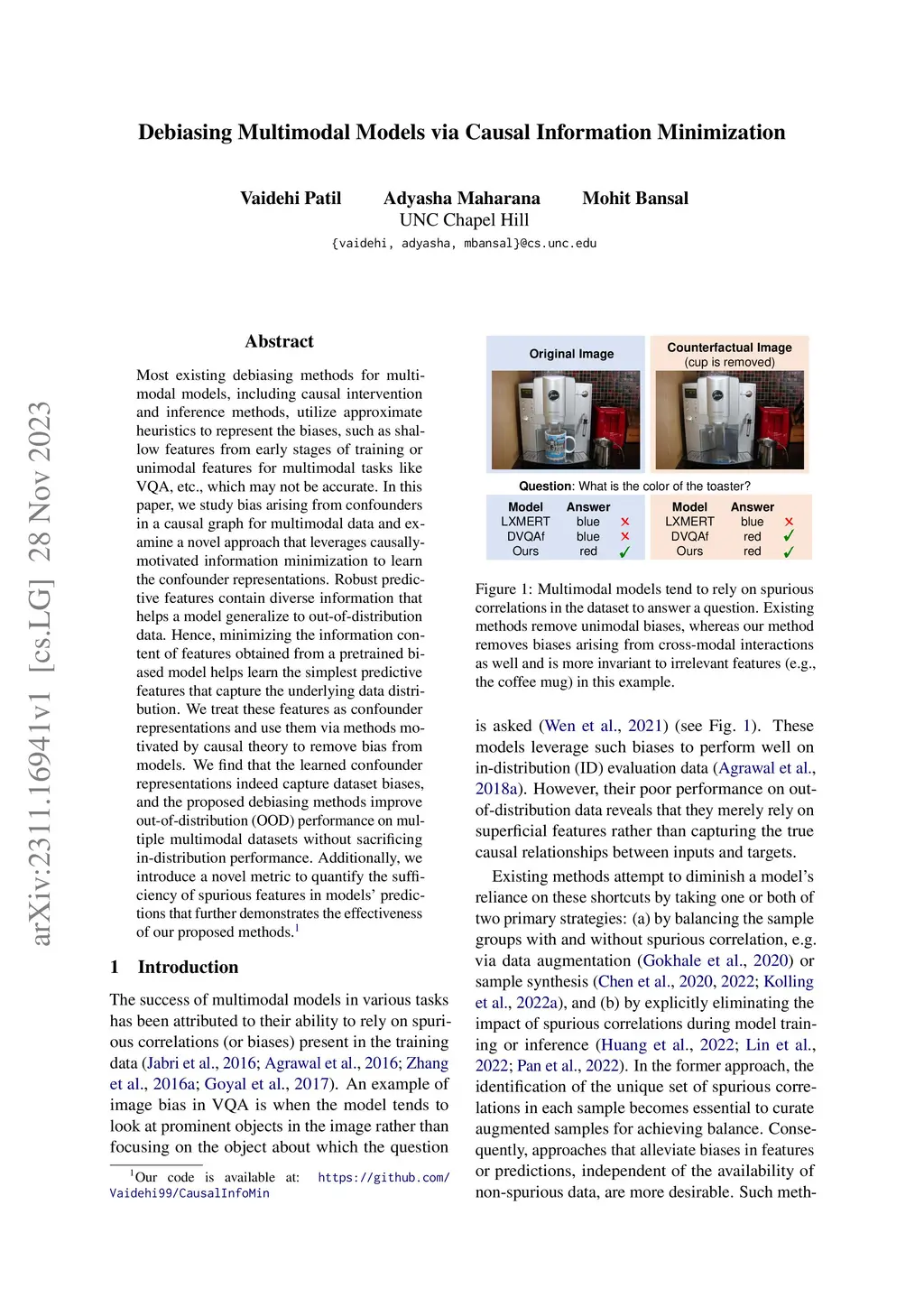 Debiasing Multimodal Models via Causal Information Minimization