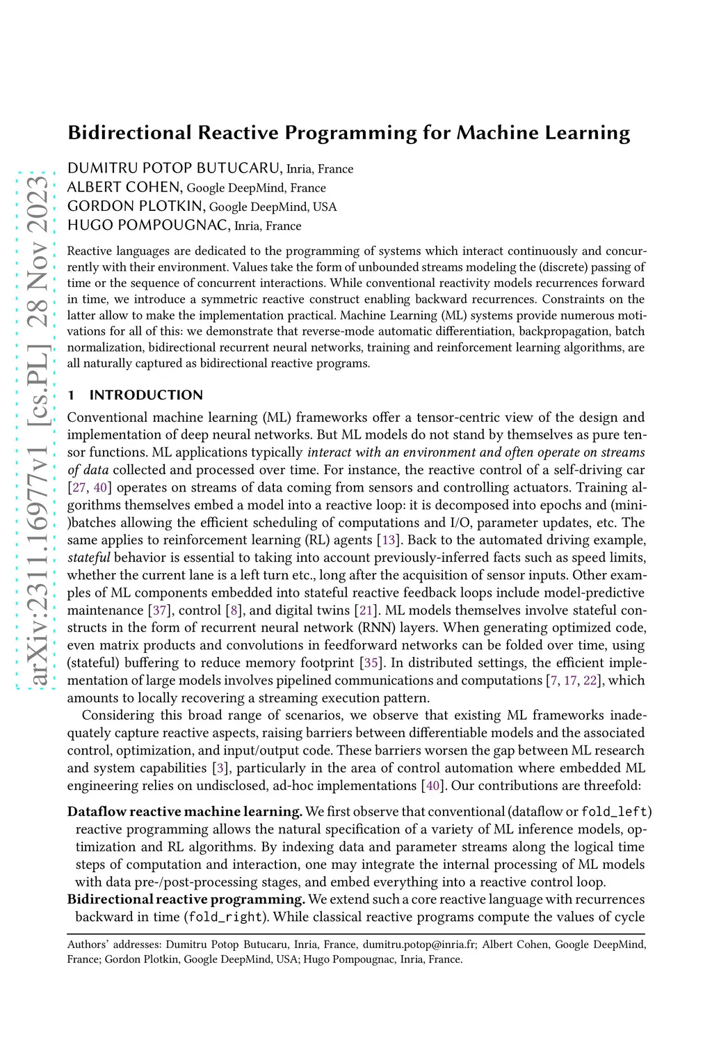 Bidirectional Reactive Programming for Machine Learning