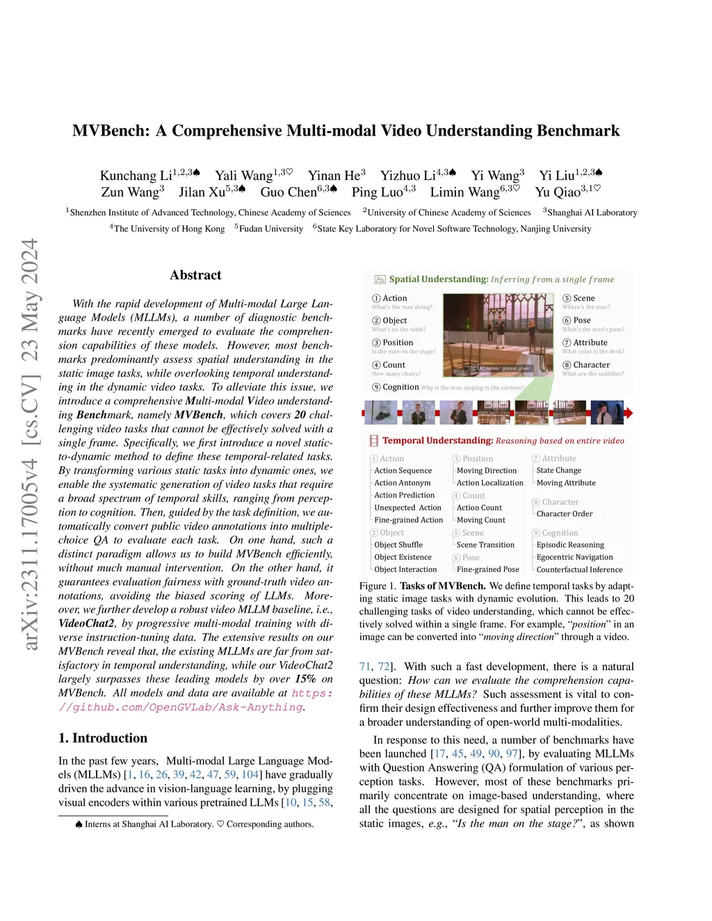 MVBench: A Comprehensive Multi-modal Video Understanding Benchmark