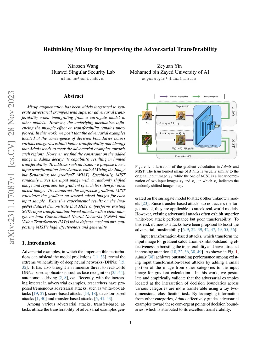 Mixup augmentation has been widely integrated to generate adversarial examples with superior adversarial transferability when immigrating from a surrogate model to other models. However, the underlying mechanism influencing the mixup's effect on transferability remains unexplored. In this work, we posit that the adversarial examples located at the convergence of decision boundaries across various categories exhibit better transferability and identify that Admix tends to steer the adversarial examples towards such regions. However, we find the constraint on the added image in Admix decays its capability, resulting in limited transferability. To address such an issue, we propose a new input transformation-based attack called Mixing the Image but Separating the gradienT (MIST). Specifically, MIST randomly mixes the input image with a randomly shifted image and separates the gradient of each loss item for each mixed image. To counteract the imprecise gradient, MIST calculates the gradient on several mixed images for each input sample. Extensive experimental results on the ImageNet dataset demonstrate that MIST outperforms existing SOTA input transformation-based attacks with a clear margin on both Convolutional Neural Networks (CNNs) and Vision Transformers (ViTs) w/wo defense mechanisms, supporting MIST's high effectiveness and generality.