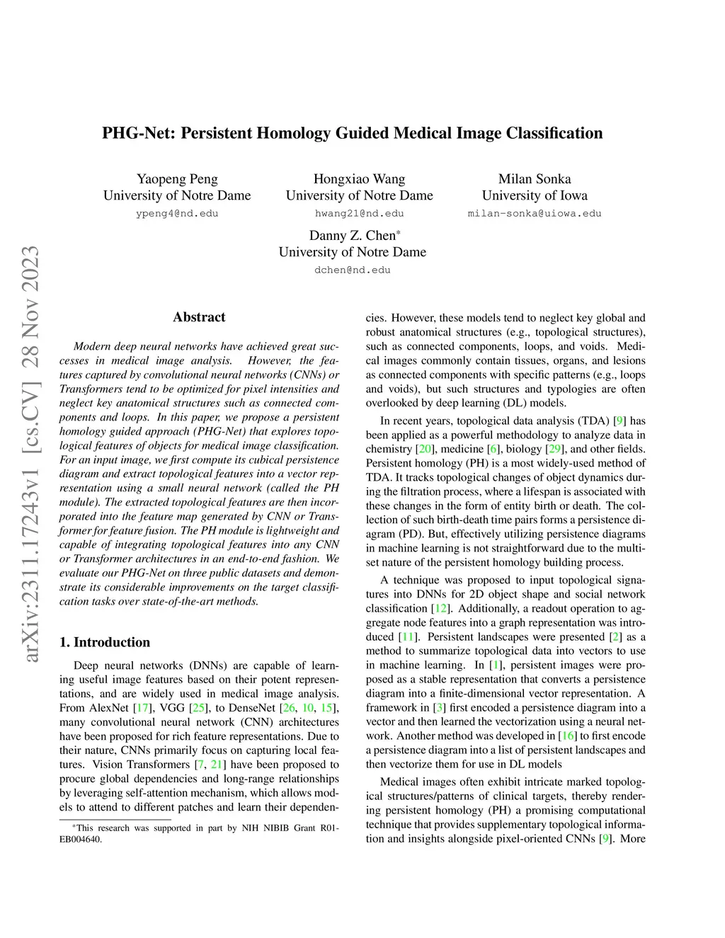 PHG-Net: Persistent Homology Guided Medical Image Classification