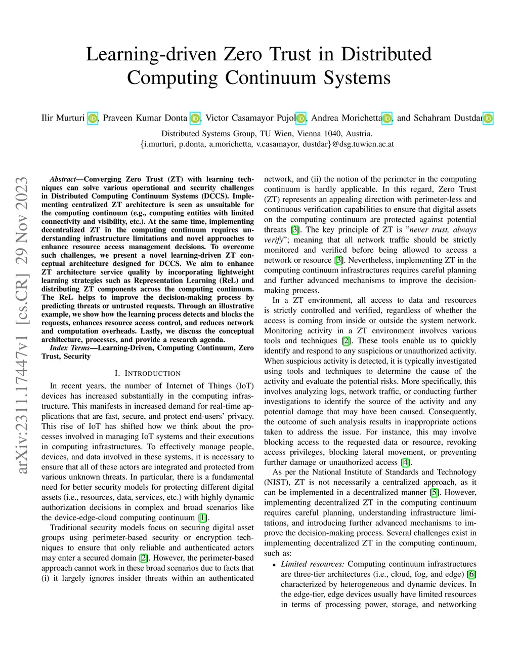 Learning-driven Zero Trust in Distributed Computing Continuum Systems