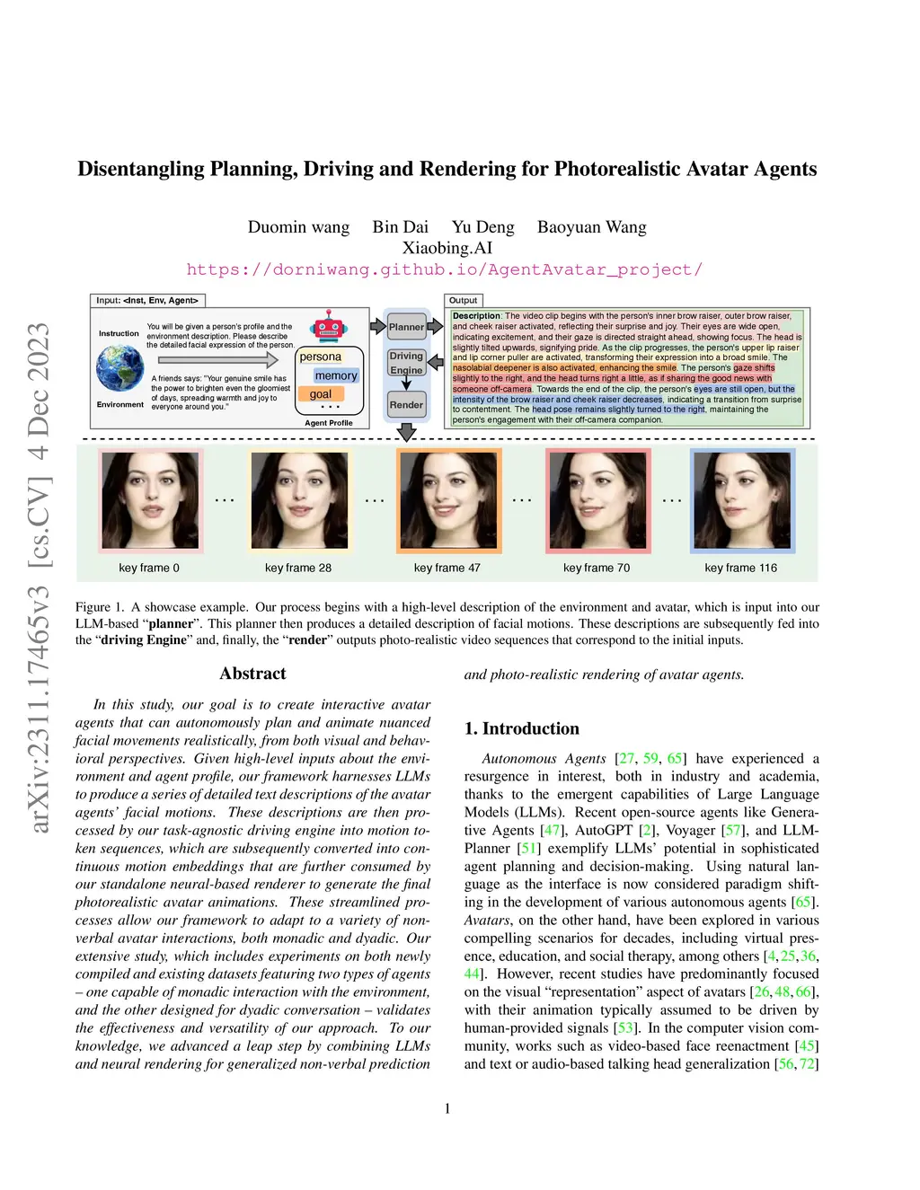 AgentAvatar: Disentangling Planning, Driving and Rendering for