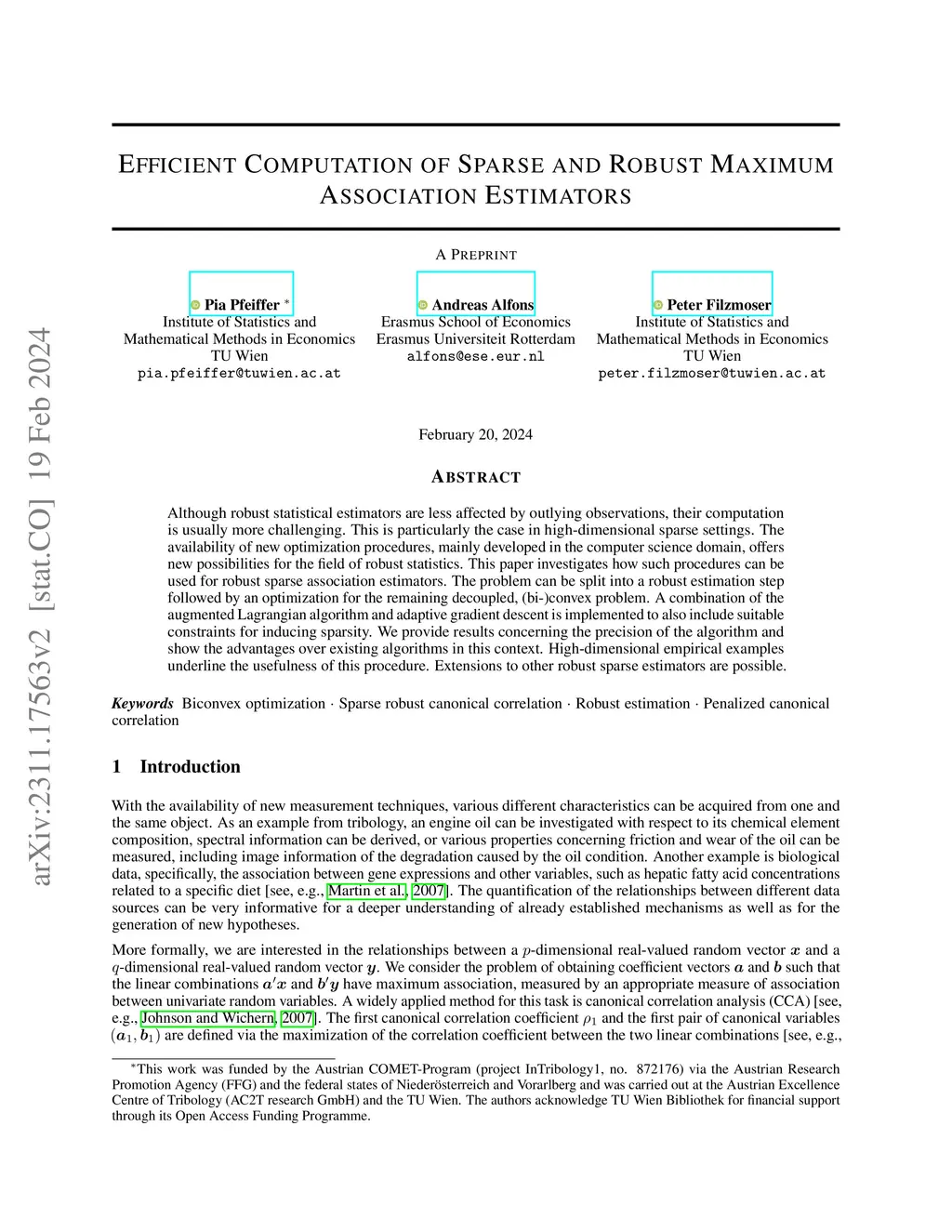 Robust statistical estimators offer resilience against outliers but are often computationally challenging, particularly in high-dimensional sparse settings. Modern optimization techniques are utilized for robust sparse association estimators without imposing constraints on the covariance structure. The approach splits the problem into a robust estimation phase, followed by optimization of a decoupled, biconvex problem to derive the sparse canonical vectors. An augmented Lagrangian algorithm, combined with a modified adaptive gradient descent method, induces sparsity through simultaneous updates of both canonical vectors. Results demonstrate improved precision over existing methods, with high-dimensional empirical examples illustrating the effectiveness of this approach. The methodology can also be extended to other robust sparse estimators.