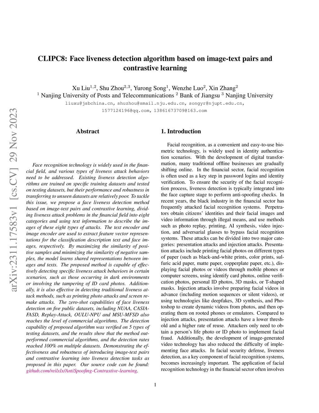 CLIPC8: Face liveness detection algorithm based on image-text pairs and