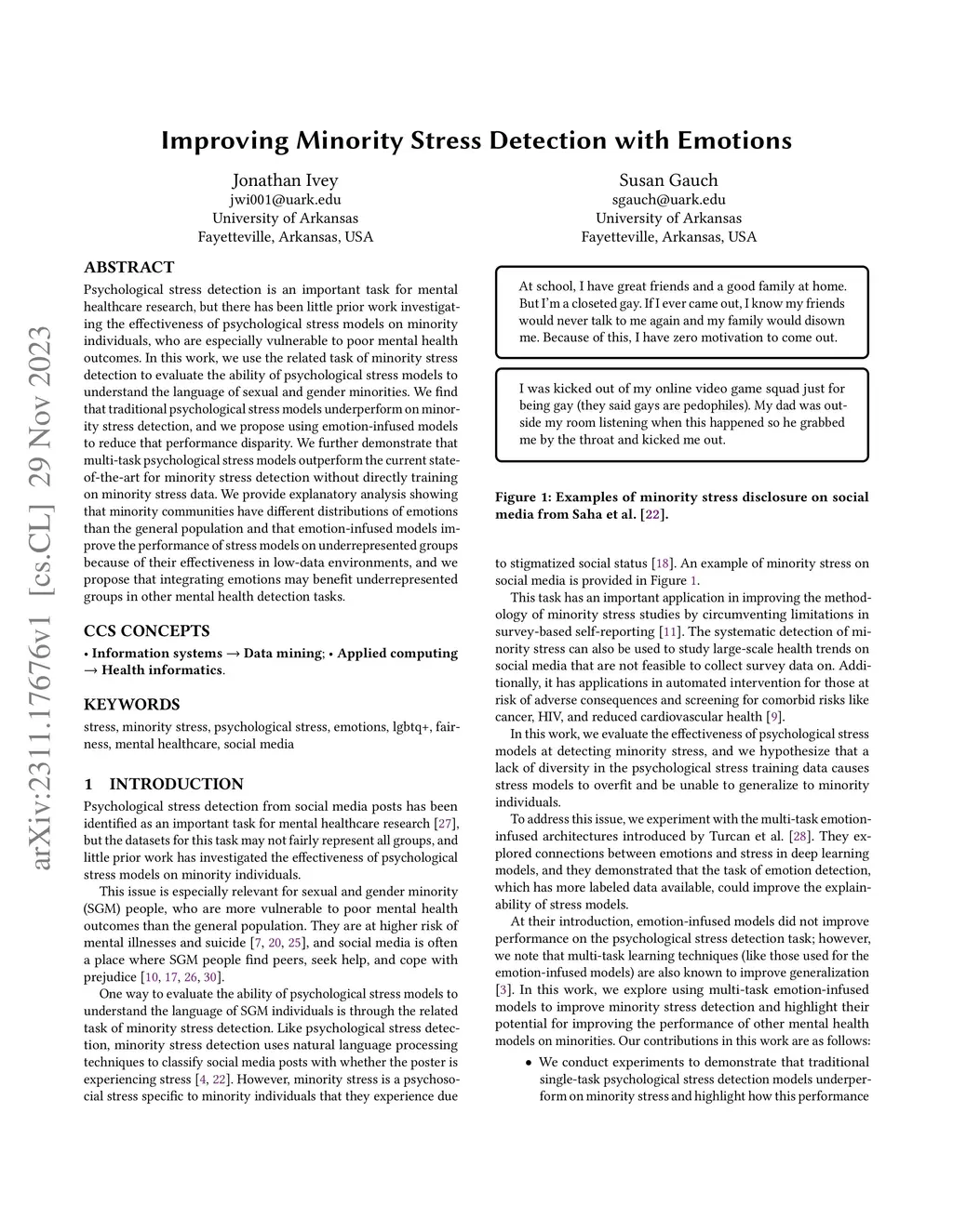 Improving Minority Stress Detection with Emotions