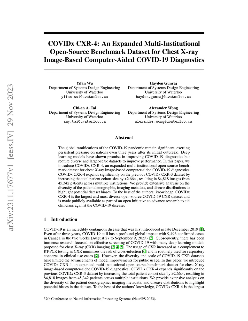 COVIDx CXR-4: An Expanded Multi-Institutional Open-Source Benchmark