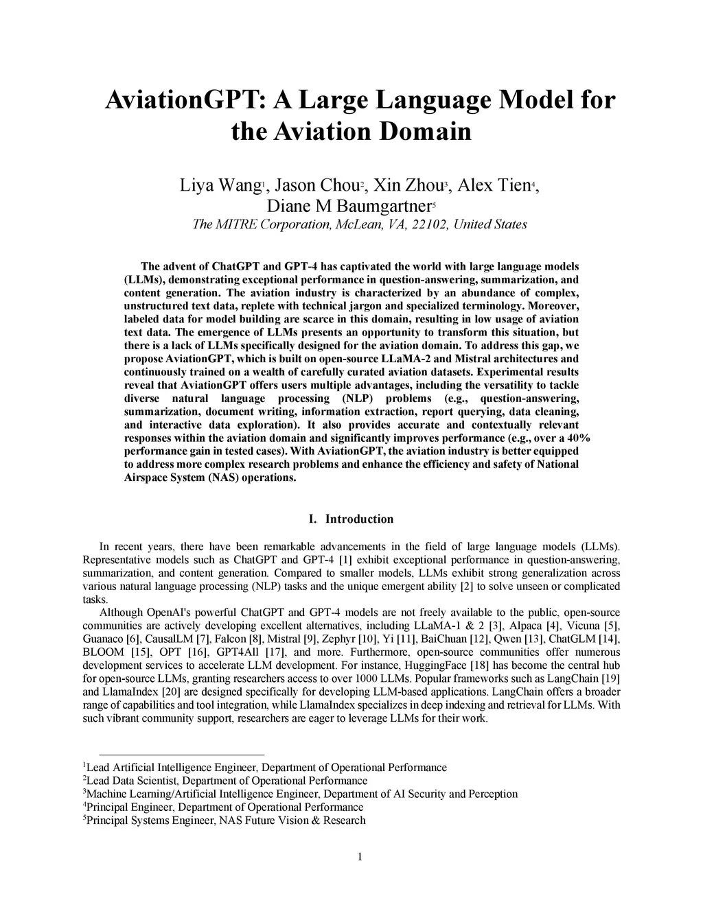 The advent of ChatGPT and GPT-4 has captivated the world with large language models (LLMs), demonstrating exceptional performance in question-answering, summarization, and content generation. The aviation industry is characterized by an abundance of complex, unstructured text data, replete with technical jargon and specialized terminology. Moreover, labeled data for model building are scarce in this domain, resulting in low usage of aviation text data. The emergence of LLMs presents an opportunity to transform this situation, but there is a lack of LLMs specifically designed for the aviation domain. To address this gap, we propose AviationGPT, which is built on open-source LLaMA-2 and Mistral architectures and continuously trained on a wealth of carefully curated aviation datasets. Experimental results reveal that AviationGPT offers users multiple advantages, including the versatility to tackle diverse natural language processing (NLP) problems (e.g., question-answering, summarization, document writing, information extraction, report querying, data cleaning, and interactive data exploration). It also provides accurate and contextually relevant responses within the aviation domain and significantly improves performance (e.g., over a 40% performance gain in tested cases). With AviationGPT, the aviation industry is better equipped to address more complex research problems and enhance the efficiency and safety of National Airspace System (NAS) operations.